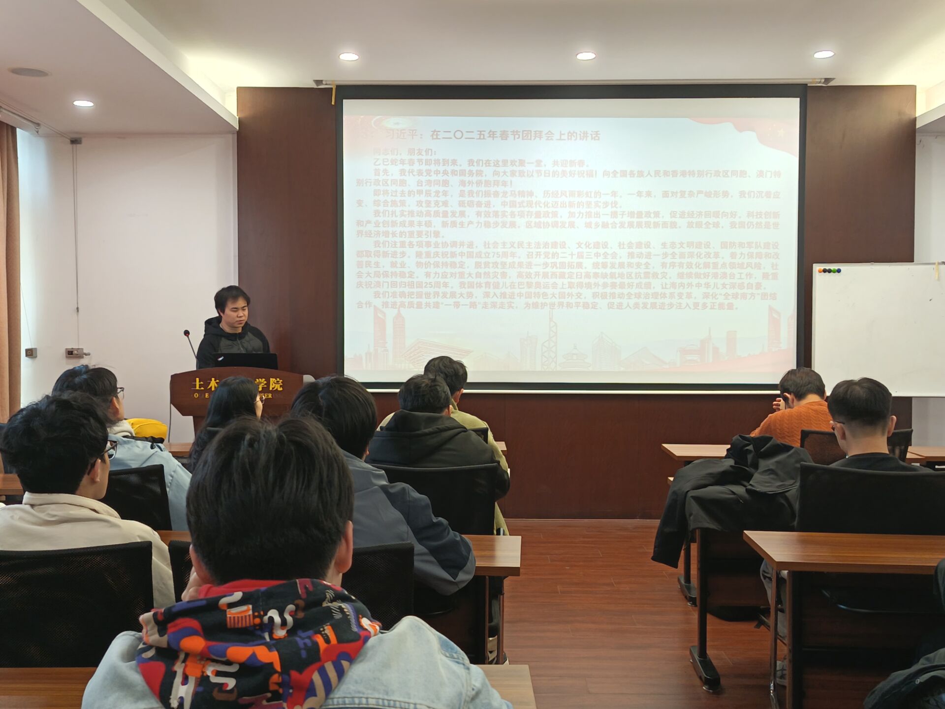 会末,院团委书记高耀远老师和副书记焦学凯老师总结此次学习,并对全体学生骨干要求:一是应主动学习与创新,结合国家战略开展研究性学习,将个人探索与国家需求结合,形成创新思维。二是学生应以终身成长为目标,提升核心素养,培养适应力与责任感。三是学生需将智慧、坚韧与生命力转化为具体行动,从学习创新、文化传承、社会服务、全球视野等多维度提升自我,以蛇行千里的毅力在中国式现代化征程中贡献青春力量。