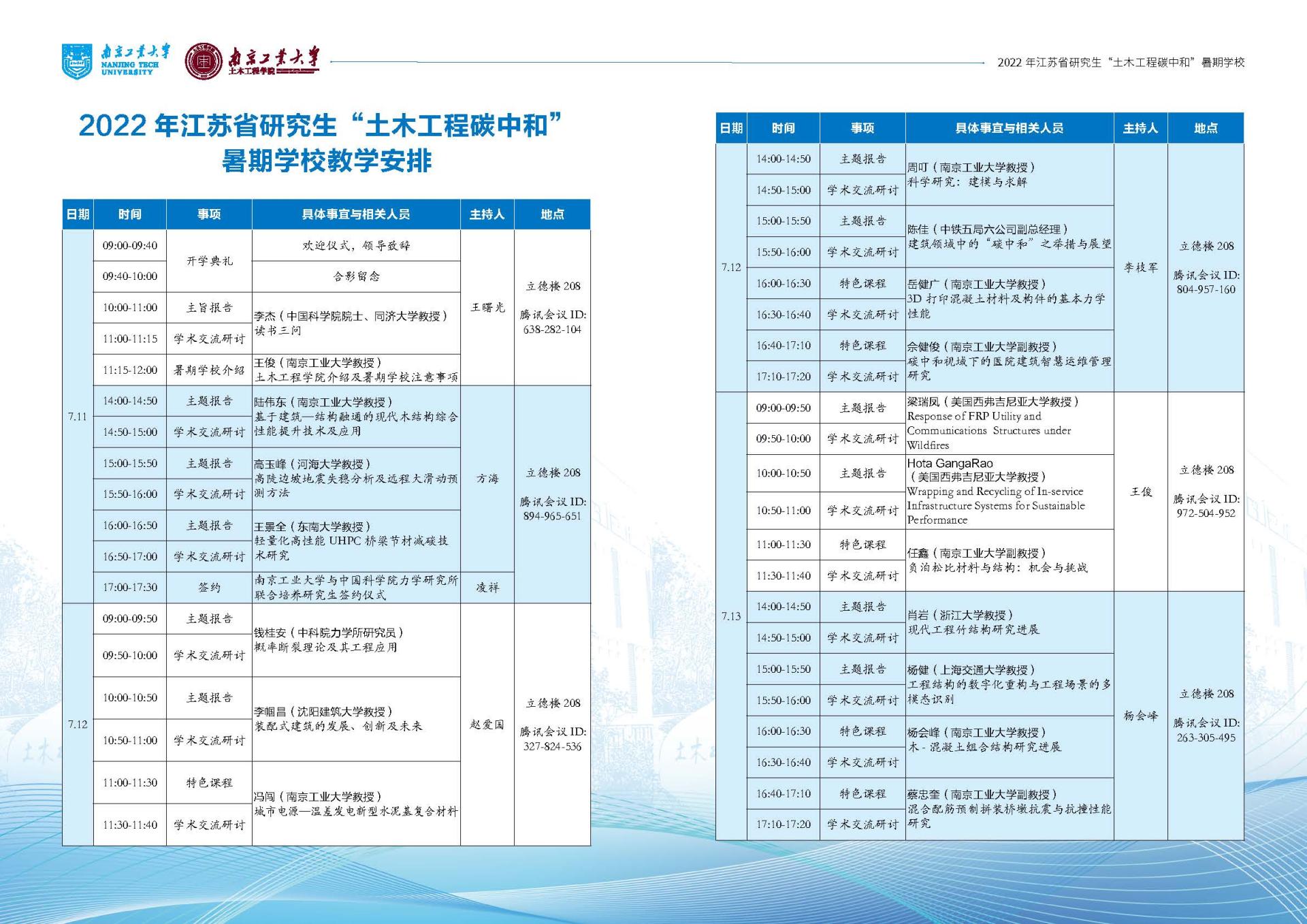 2022年江苏省研究生“土木工程碳中和”暑期学校由江苏省工学4类研究生教育指导委员会主办,999策略白菜手机论坛研究生院、999策略白菜手机论坛999论坛白菜大全承办。本次暑期学校将通过国内外著名学者系列讲座、名师专家特色短期课程、实验室参观讲解、多方向分组研讨四大环节,为学员提供认知高性能材料与结构、再生材料、装配式结构与建造领域国际前沿学术方向和研究动态的窗口,使其开阔学术视野、拓展科研思路、培养创新思维、提高学术素养。