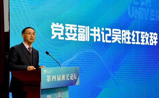 校党委副书记吴胜红结合论坛主题及《本科生班级建设指导意见》,对班长工作提出三点希望:一是提炼班级文化建设向心力,做思想引领的主心骨;二是增强班级组织建设凝聚力,做团队发展的顶梁柱;三是加大班级学风建设行动力,做勤学善思的发动机。