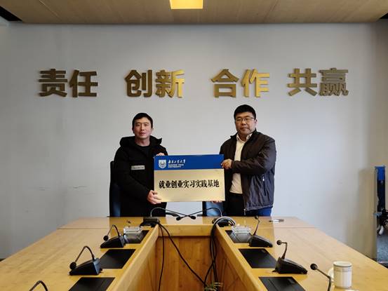 李帅详细介绍了南通五建的发展历程、人才培养战略,感谢学校和土木学院长期以来输送的大量务实、踏实、高素质人才,他希望以共建基地为契机,开展工程应用与实践的深度合作,推动实践基地、研发中心、校外导师共建。张涛表示,学院欢迎并诚邀企业参与到人才培养实践教育的全过程,共同培养契合行业发展需要的卓越工程师人才。随后,双方签署合作协议,并为就业创业实习实践基地挂牌。