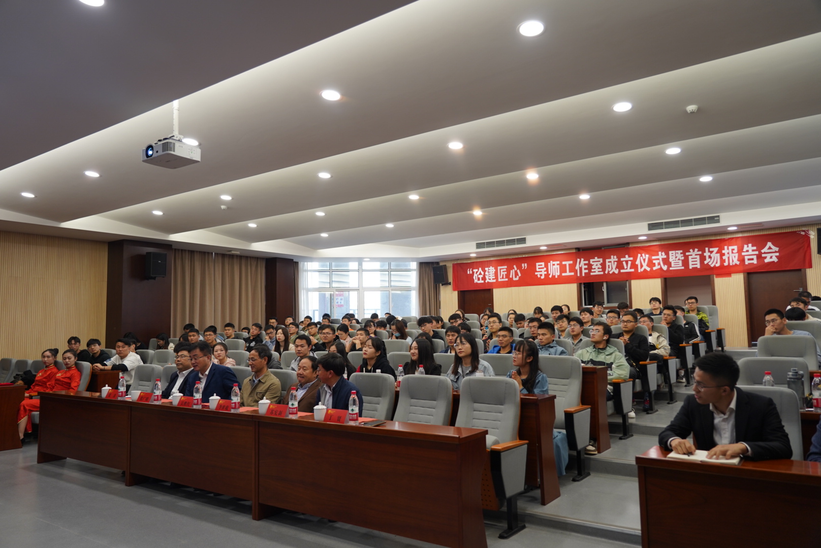 2020年11月2日下午15:30,999论坛白菜大全“砼建匠心”导师工作室揭牌仪式暨首场报告会在立德楼208报告厅顺利举行。校党委副书记吴胜红、副校长李世收、党委研究生工作部部长、研究生院常务副院长张广明、999论坛白菜大全党委书记张涛、中建二局江苏公司总经理助理苏宪新以及999论坛白菜大全全体2020级研究生出席了本次活动,活动由999论坛白菜大全党委副书记丁贤主持。