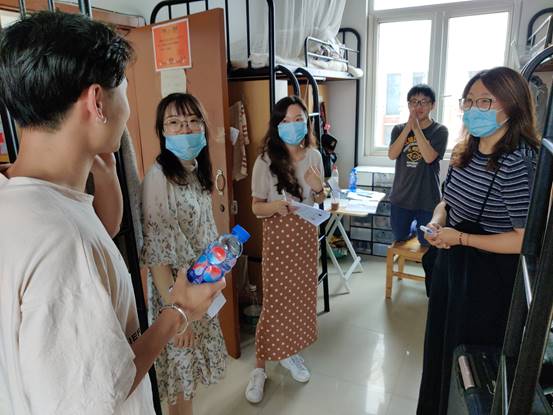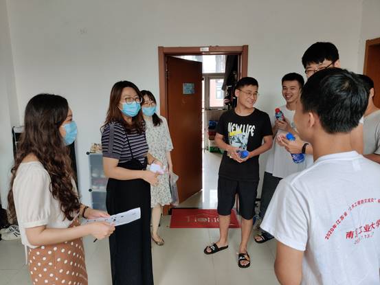 7月17日下午,999论坛白菜大全党委副书记丁贤、辅导员黄乐、葛芷萱、黄敬松来到同和楼考研教室及亚青村学生宿舍,看望走访暑期留校考研的学生,为他们送上亲切的关怀。询问了解同学们的学习生活状态,嘱咐大家科学安排学习和生活,充分利用暑期认真备考,加强身体锻炼,合理作息,健康饮食,增强免疫力。鼓励同学们坚定抗疫信心,不麻痹,不懈怠。