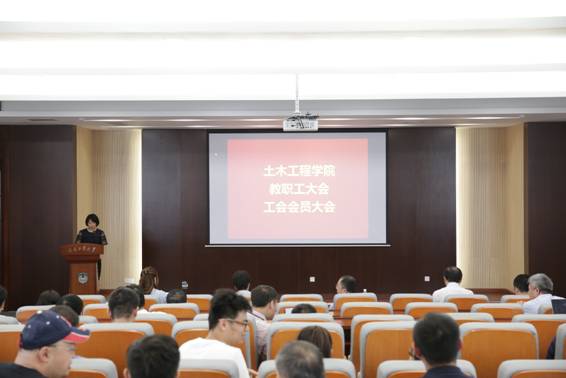 在校工会的指导和帮助下,在全院教职工的共同努力下,6月9日,999论坛白菜大全教职工大会、工会会员大会在土木学院学科楼二楼报告厅胜利召开,大会由学院副院长王俊主持,大会在庄严的国歌声中拉开了序幕。