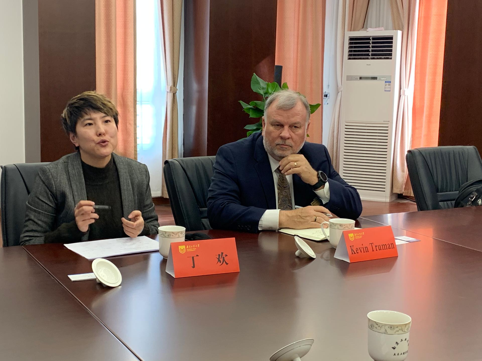 密苏里大学堪萨斯校区工程与计算机学院院长Kevin Truman与国际事务处主任丁欢介绍了堪萨斯市区工业经济发展特点,以及工程与计算学院的师资情况、科研特色、学生就业情况,对此次3+1+1项目及其他类型联合培养项目做了细致介绍,并对今后两院广泛合作进行了深入讨论。