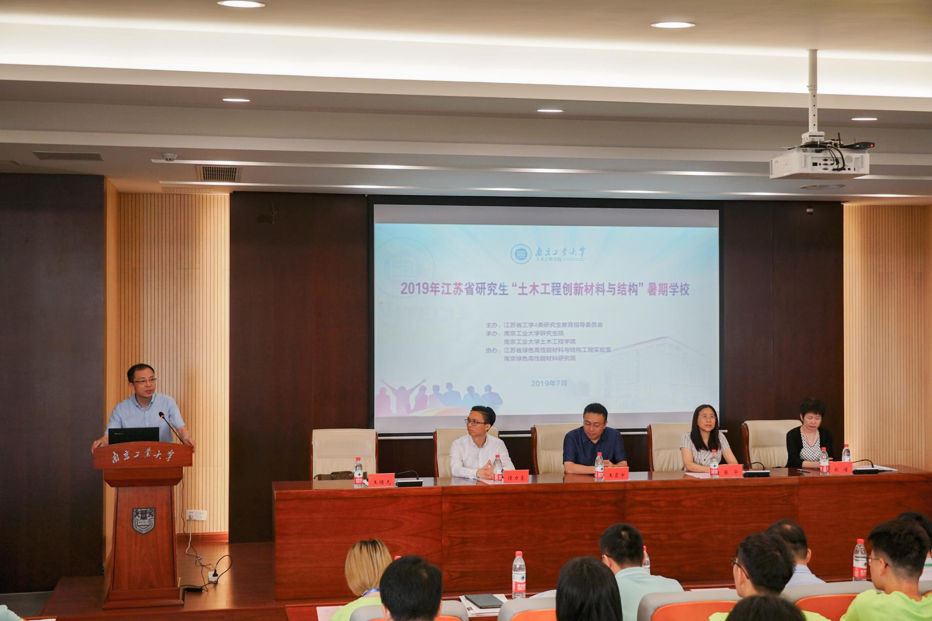 7月16日上午,2019年江苏省研究生“土木工程创新材料与结构”暑期学校开学典礼在白菜官网土木学科楼208报告厅举行。哈尔滨工业大学教授王震宇,北京航空航天大学博士后研究员谭力豪,研究生院副院长张华,999论坛白菜大全党委书记欧谨、院党委副书记丁贤、副院长王璐,以及暑期学校精品特色课程授课教师和全体学员参加本次开学典礼。开学典礼由999论坛白菜大全院长王曙光主持。