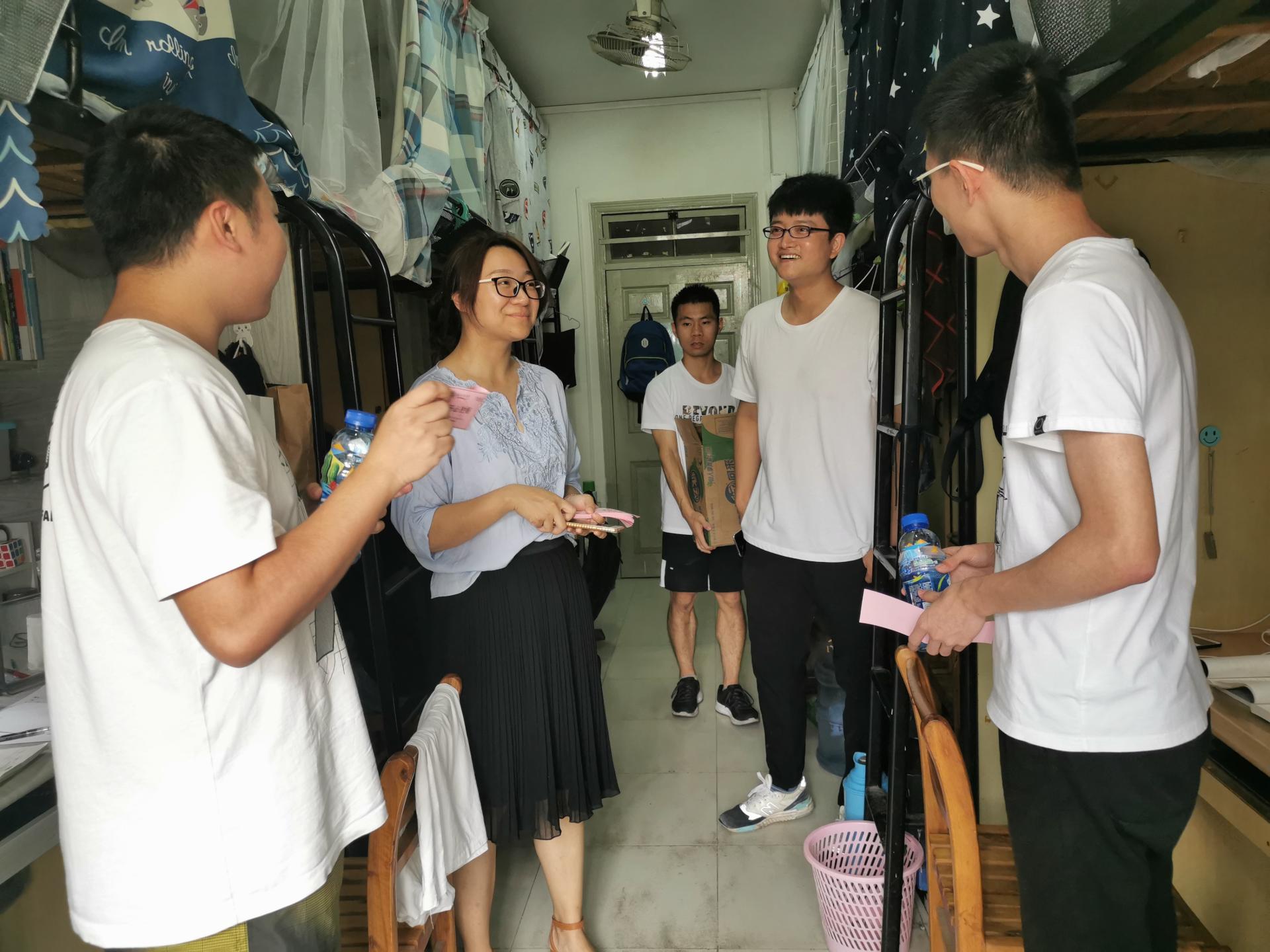 随后,丁贤与全体辅导员一同前往同和楼以及象山宿舍分别看望慰问在教室和宿舍自习的学生。