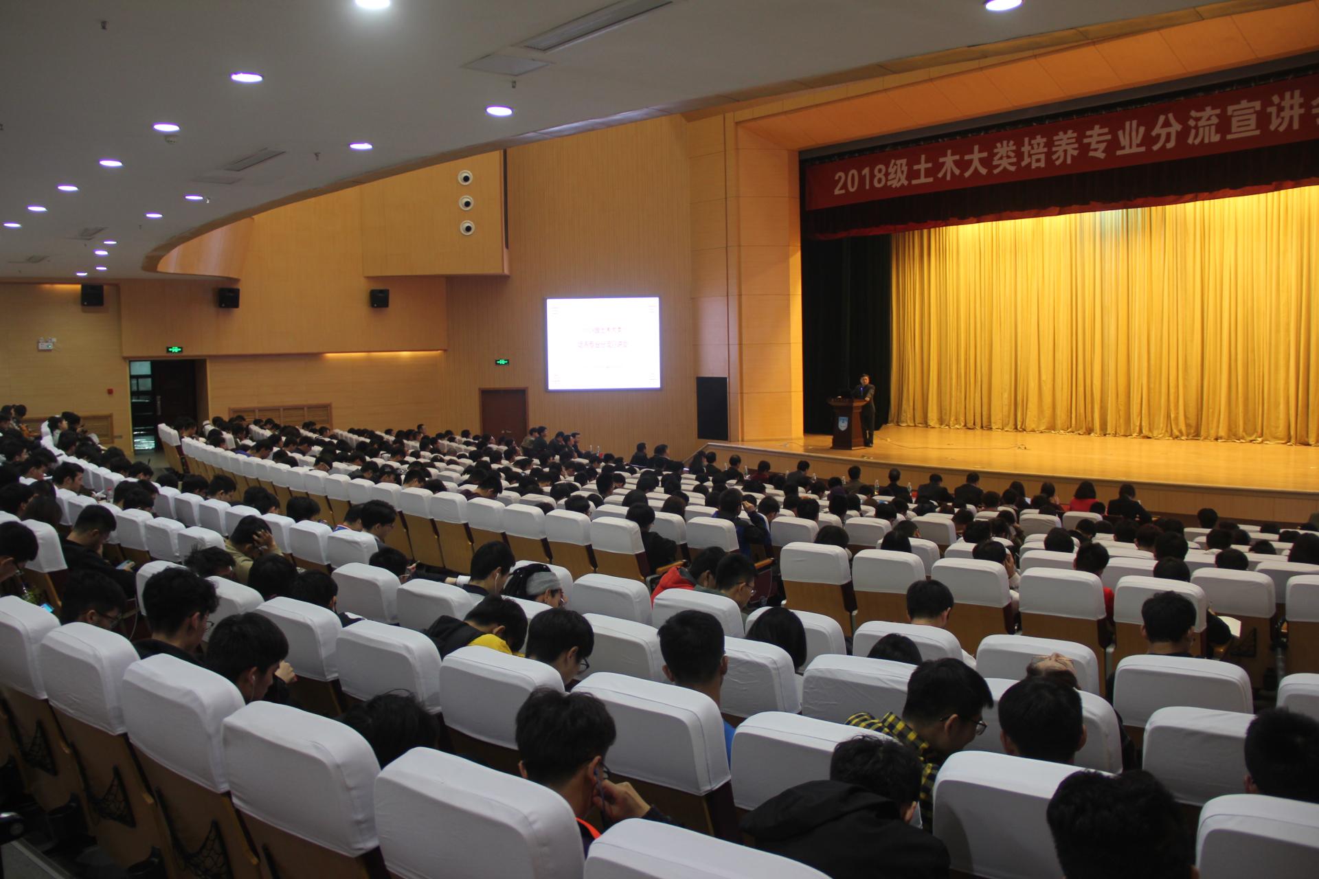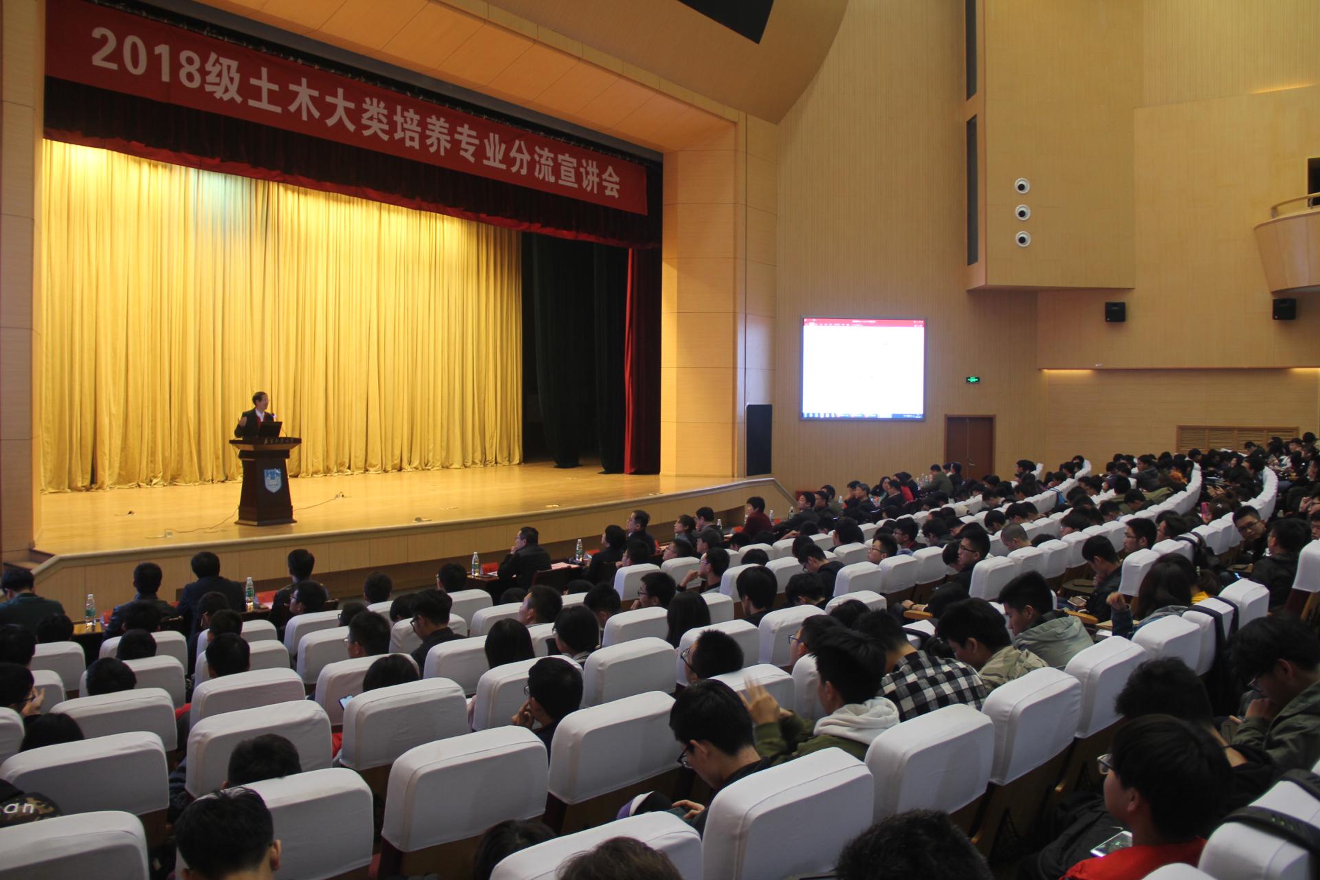 为进一步统筹推进2018级土木大类学生分流工作,贯彻学校大类招生、大类培养的政策精神,帮助学生深入了解大类专业基本情况,引导学生充分酝酿并综合兴趣培养,999论坛白菜大全联合交通运输工程学院于3月27日晚在江浦校区大礼堂举办2018级土木大类培养专业分流宣讲会。教学事务部部长董军、学生事务部部长黎能进、教学事务部副部长阳辉、999论坛白菜大全全体院领导及各系教师代表、交通运输工程学院全体院领导及各系教师代表、全体2018级土木大类学生参加本次会议。本场宣讲会由999论坛白菜大全副院长王俊主持。
