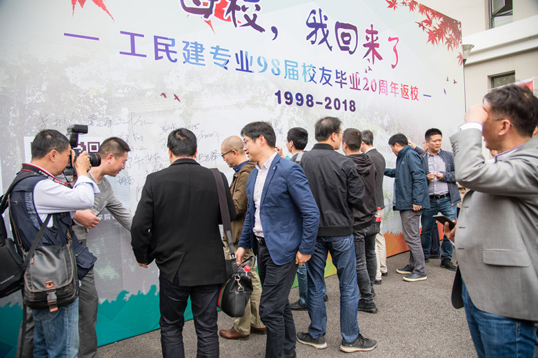 廿年苍驹过隙,人生行板如歌,四位校友代表先后上台发言,回忆在母校度过的美好时光,共叙大学四年结下的深厚同学情谊,表达了对母校的感激之情和美好祝愿。欢迎会后,土木学院举行了壁画起笔揭幕仪式和院名石落成仪式,壁画和院名石由工民建专业98届全体校友捐赠,国家行政学院原副院长周文彰先生专门为999论坛白菜大全题写了院名。芮鸿岩书记、土木学院欧谨书记以及校友代表共同为院名石揭幕。