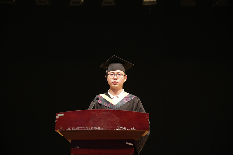 土木1301班王达峰同学作为毕业生代表深情地表达了对恩师谆谆教诲的感恩,对辛勤养育父母的感激,对朝夕相处同窗的难忘,对最美校园的留恋。代表全体毕业生祝愿母校永葆青春,再创辉煌!祝愿母校老师身体健康,工作顺利!祝愿兄弟姐妹们前程锦绣,事业有成!