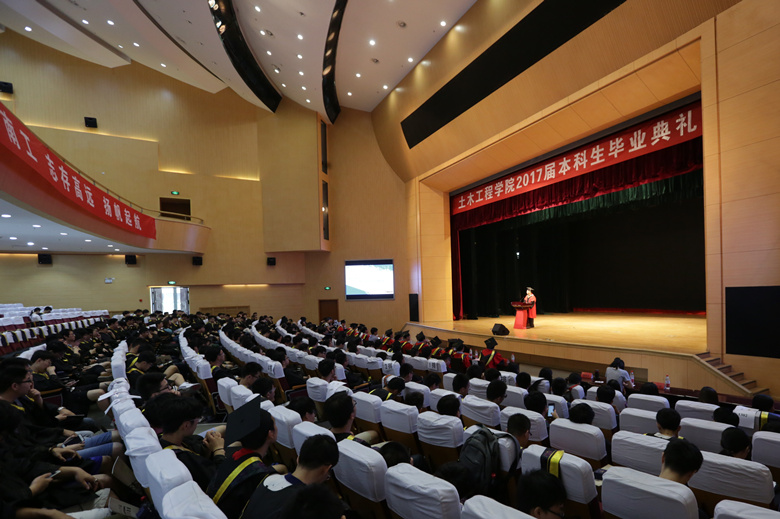 副校长刘伟庆教授在讲话中强调大学生活的重要性。四年里,大家学习到了基本的专业基础和理论知识,有了谋生的饭碗;作为从中学的基础教育到走向社会成为“职业人”的过渡,大学生活也锻炼了大家接触社会的基本能力。刘伟庆副校长回顾了土木专业的办学历史、办学规模、师资力量、国内外影响等方面感慨学院的快速发展,勉励毕业生们始终保持积极向上的进取心,在工作、技术上精益求精;踏踏实实地做事,勤勤恳恳地做人;做对社会有用的人,为社会发展、中华民族复兴贡献自己的力量。
