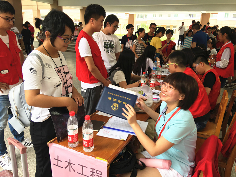 当天上午7点半,志愿者们在学院党委副书记周静及辅导员老师的带领下于厚学楼全部到位,做好迎新准备工作。学院在校门口、厚学楼及宿舍区均安排志愿者迎接新生及随行家长。厚学楼大厅内,辅导员老师与志愿者按流程为新生办理报到手续,并解答入学相关疑问。新生们在志愿者的带领下顺利入住学生宿舍。整个迎新工作开展的井井有条,热情、周到的服务也使每个新生及家长感受到了学院的温暖。