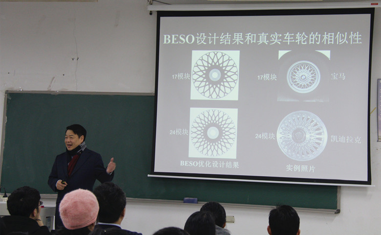 谢亿民教授是澳大利亚工程院院士,皇家墨尔本理工大学杰出教授,于2016年受聘担任999策略白菜手机论坛特聘教授,并为研究生开设了相关课程。报告中,谢亿民教授列举了渐进结构优化法在国内外各种建筑结构及相关领域成功应用的实例,这一方法把拓扑法与结构理论的有效衔接,被许多国际著名建筑师采用,在多个国家产生了一批著名建筑。该方法的基本思路简单明了,即逐渐去除结构中的低效材料或者逐步将材料从低效区域转移到高效区域,最终获得重量轻而性能高的设计。渐进结构优化易于实现,应用广泛,从飞行器与车辆的减重降耗、到桥梁与建筑的美观构造,以及医用材料的研发,该方法都能提供新颖而高效的设计。渐进结构优化法的理论价值和应用前景深深地吸引了在场师生,大大拓宽了同学的视野。