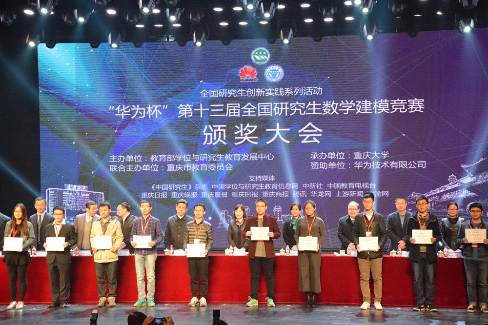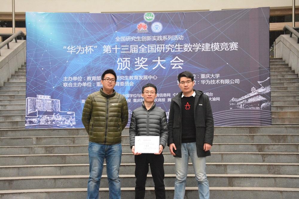 2016年“华为杯”第十三届全国研究生数学建模竞赛在今年9月顺利举行,该竞赛是目前国内层次最高、规模最大、影响最广泛的全国性研究生学科竞赛。竞赛旨在提高我国研究生的培养质量,激发研究生群体的创新活力和学习兴趣,培养创新精神和团队意识。为广大研究生搭建了探索实际问题、开展学术交流、提高科研能力和加强团队意识的有效平台。全国包括香港、澳门在内的32个省、市、区的432所高校和全国各研究院所在内的8872队研究生成功参赛,其中博士生1500多名,获奖结果日前揭晓,由我院2016级3名博士生黄纬国、王梦杰和吴炳延组成的参赛队(指导老师程浩、邵建峰)脱颖而出,获得全国一等奖。