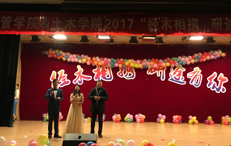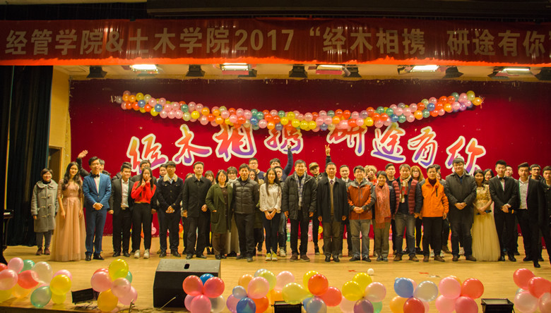 送走了硕果累累的2016,悄悄地迎来了充满希望的2017。回顾过去,激情与奋斗,成功或失败都随着时间的流逝成为了历史,而每个人也都在总结自己的2016并展望美好的2017。2016年12月29日晚,我们迎来了土木学院、经管学院迎新年联谊晚会。党委研究生工作部副部长顾永东,土木学院院长肖岩,经济与管理学院党委书记杨琦,999论坛白菜大全党委副书记熊中宏,999论坛白菜大全副院长汪霄,经济与管理学院副院长陈同扬,两院研究生导师代表、系主任、学办老师、校研究生会和各兄弟学院研究生会主席与两院500多名研究生齐聚一堂,共迎新年。