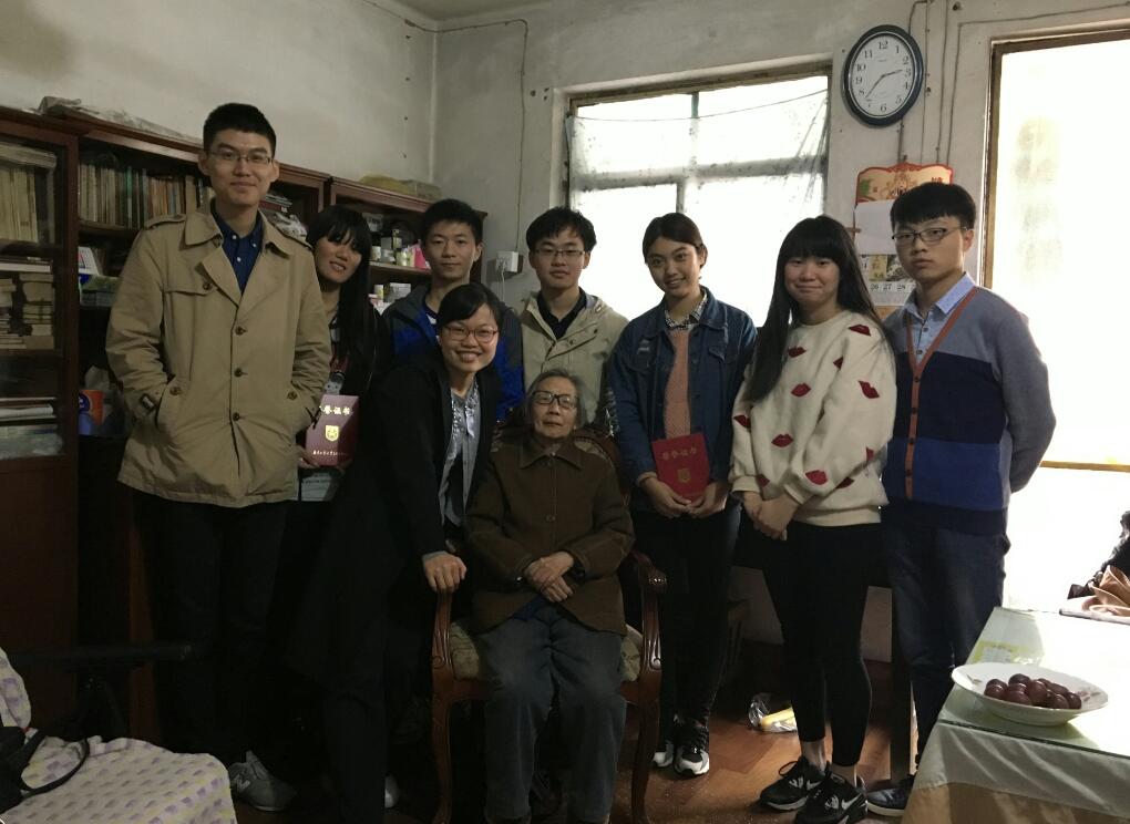 下午2点,同学们准时来到章老师家中,章老师热情迎接老师和同学们,她虽年逾90,但思维敏捷,与时俱进,关心时事,并坚持每天看报。她关切地询问大家的学习和生活状况,勉励大家要好好学习。老师们向章老师汇报了学院近期的发展,同学们也分别向章老师汇报了自己的思想、学习、工作和生活。最后,章老师一一为2015级四位获奖学生颁奖。整个颁奖交流会充满温馨和正能量,章老师的胸襟和品格也给了同学们深深的触动,同学们在随后的交流中也表示要感恩社会,传承爱心,努力学习,不负章老师对大学的殷切期望。