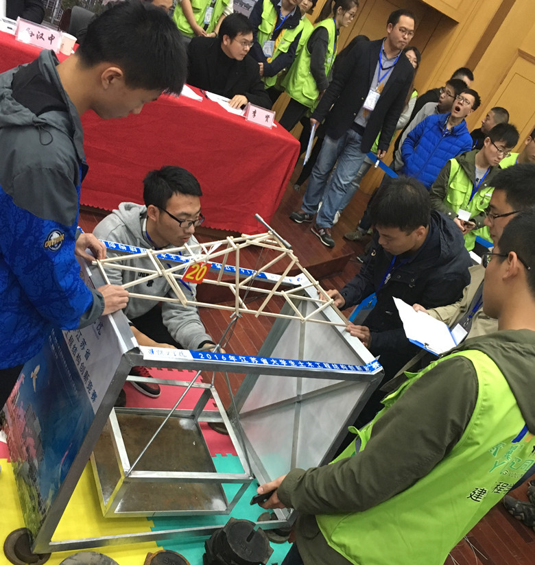 江苏省大学生土木工程结构创新竞赛,是一项在全省设置土木工程专业的各高校中开展的、具有导向性、示范性和群众性的大学生课外专业学术科技创新竞赛活动,是培养建筑类及相关学科专业的学生创新精神和实践能力的载体和展示成果的平台。