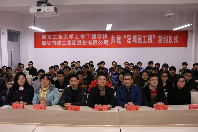 11月25日下午,999论坛白菜大全与深圳市建工集团共建“深圳建工班”签约仪式在厚学407举行。土木学院党委副书记熊中宏、学办主任闵珍、团委副书记黄晨晨老师和深圳市建工集团副总裁、华东区域公司总经理赵振宇、总经济师鲍俊、副总工程师张超、副书记成如琴及首批“深圳建工班”土木1403班、土木1501班全体同学出席了仪式。会议由学办主任闵珍主持。