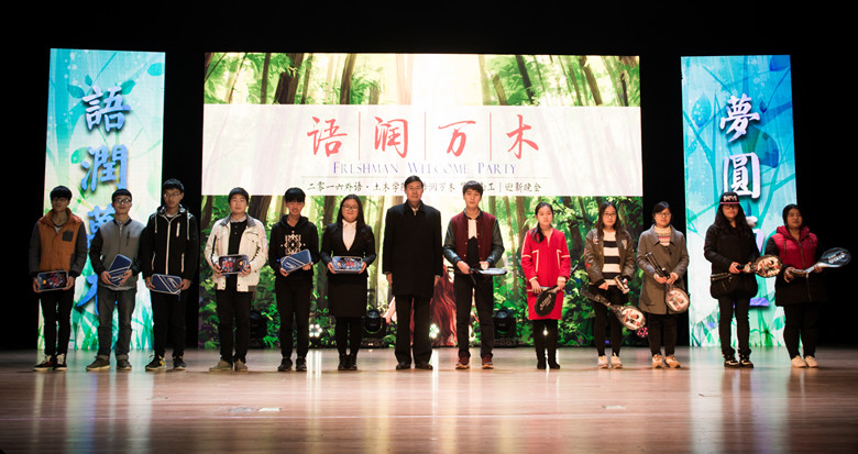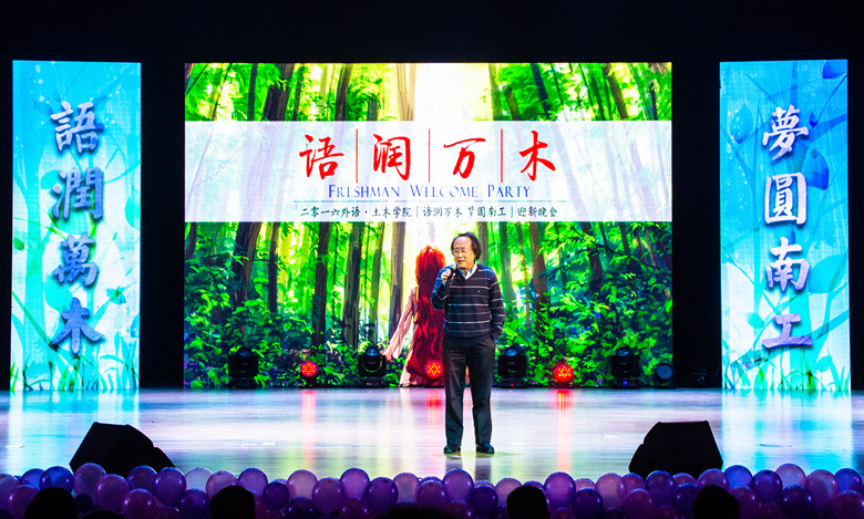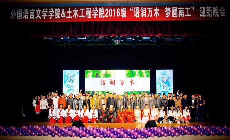 共语一执手,语润万木新,12月12日晚,999论坛白菜大全与外国语言文学学院在江浦大礼堂隆重举行“语润万木•梦圆南工”2016级迎新晚会。白菜官网副校长刘伟庆,副校长崔益虎,校党委宣传部部长张健,校学生事务部部长郭万牛,校团委副书记朱忠祥,两院全体院领导、系主任、学办全体老师、校友代表、各兄弟学院学生会主席与2016级新生们齐聚一堂,共同观看了这场精彩纷呈的演出。