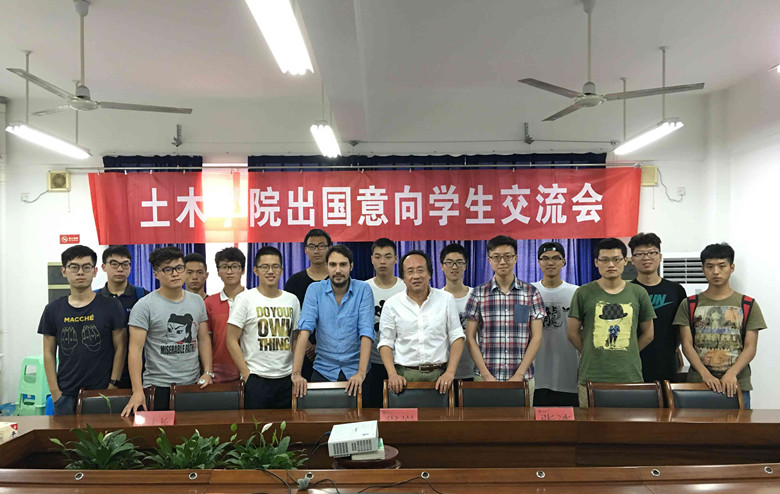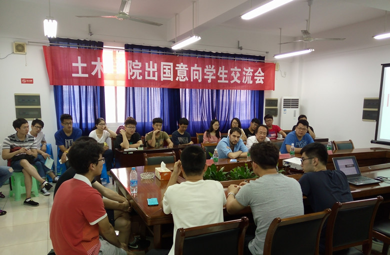 为拓展学生国际视野,给予学生出国留学、交流帮助与指导,999论坛白菜大全于6月13日下午四点在地坤楼409会议室举办出国意向学生交流会。土木学院院长肖岩教授、土木学院张冰博士、Cristoforo Demartino博士出席交流会。交流会还邀请到了今年成功申请德州大学奥斯汀分校研究生的许众泽,哥伦比亚大学研究生的张石雨,米兰理工大学研究生的徐默三位土木12级学长。学院有出国留学意向的40余名学生参加交流会,会议由院学生会董佑铭同学主持。