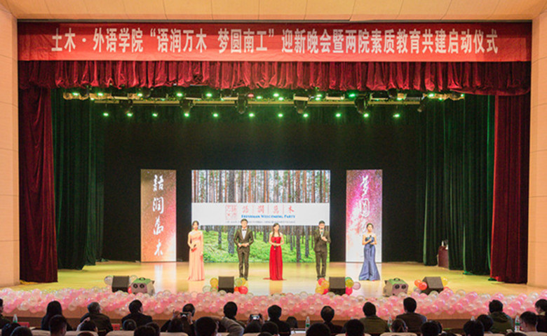 语润万木,梦圆南工,在钢筋混凝土打下的夯实基础之上,美丽的语言架起了通往明日的桥梁,面向国际、“一带一路”的宏伟蓝图也预示着两个学院合作的美好前景。2015级土木·外语迎新晚会暨两院素质教育共建启动仪式正式翻开了外语学院与土木学院合作的新篇章,秉承南工新时期发展目标,“协同创新”理念,共同推进人才教育培养模式改革与两院专业优势互补。在教育实践、专业研究、语言运用、文化创新等方面为两院学子的综合素质提升添砖加瓦。经过此次晚会的通力合作,相信两院新生在今后的的学习生活中定将不断收获成长,两院后续的合作将带来更加优秀的成绩!
