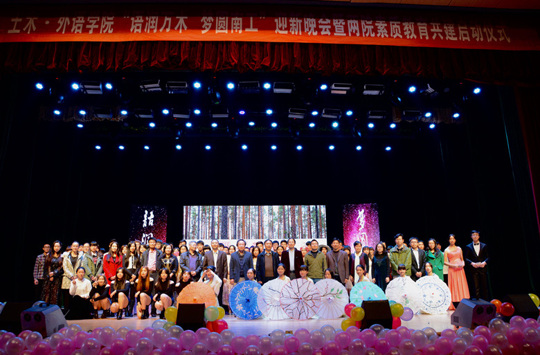 天水清相入,秋冬气始交。11月22日晚,999策略白菜手机论坛999论坛白菜大全与外国语言文学学院在白菜官网江浦大礼堂隆重举行“语润万木·梦圆南工”迎新晚会暨两院素质教育共建启动仪式。999策略白菜手机论坛党委常委、副校长崔益虎,999策略白菜手机论坛党委宣传部部长张健、共青团999策略白菜手机论坛委员会副书记朱忠祥,999论坛白菜大全党委书记胡夏闽、院长肖岩、党委副书记熊中宏,外国语言文学学院党委书记江定、院长尹富林、副院长鲍贵、副书记佴康,两院专业负责人、全体辅导员老师、各兄弟学院的学生会主席以及两院的新老生们齐聚一堂,共同观看了这场精彩纷呈的演出。