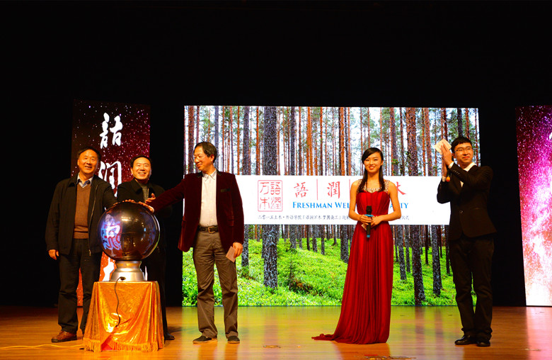晚会前,外语学院院长尹富林教授、土木学院党委书记胡夏闽老师致开幕辞。致辞中,尹院长对向两院全体新生表达了最热烈的欢迎,也对两院的素质共建表示了深切殷望,并附词一首,谆谆