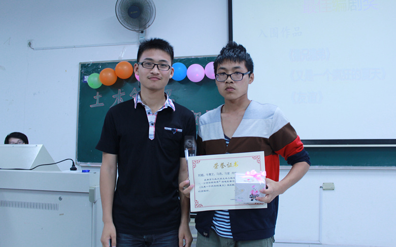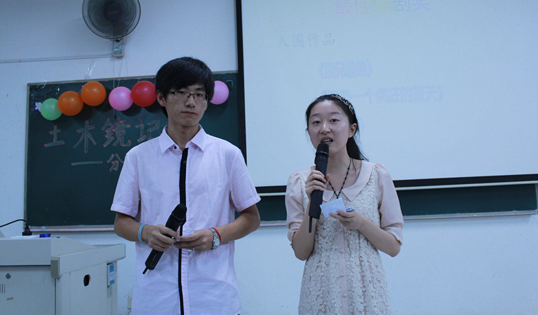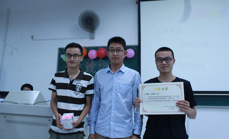活动首先欣赏了入围作品的精彩片段,随后展示了优秀微电影作品。在本次“土木镜记”比赛中土木1206班宁立眉等同学的微电影作品《父与子》获得最佳纪实奖;工管1203蔡燕国等同学的《飘》获得最佳文艺奖;节能1202刘斌等同学的微电影作品《又是一个疯狂的夏天》获得最佳编剧奖;节能1202闫燚磊等同学的《17岁》获得最佳创意奖。获得优胜奖的作品还有《逃课进行曲》,《搭讪》,《将爱进行到底》等。小小的镜头下蕴含了无比的深意。《父与子》中真挚的亲情,一件寻常家庭中都会发生的小事,却展现出了亲情的巨大力量。《又是一个疯狂的夏天》中朴素的展现了大学生的真实情状,大学生活虽然轻松但却容易迷失自己,所以大学生需要一个目标并且不断为之奋斗。而《十七岁》以MV的形式生动有趣地为大家呈现了一个关于巨星成长史的辛酸故事。每一部微电影作品都蕴含着参赛选手的真情与努力,每一部作品也都显示着当今大学生朝气蓬勃、积极向上的生活态度。