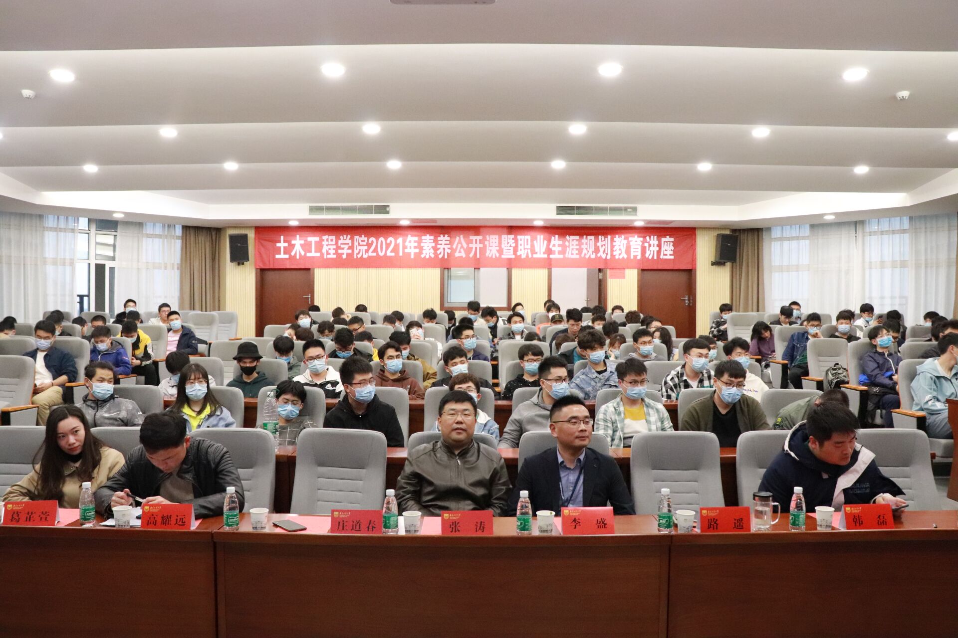 签约仪式前,李盛经理以《浅谈工程人的职业规划》为题,结合自身的工程实践经历,为同学们分析了职业生涯规划的重要性。他希望同学们在找准定位的基础上,择其所爱、择己所长、择世所需、择己所利,利用SWOT等分析工具,不断完善工程人的职业规划方案,收获精彩的职场人生。庄道春部长现场回答了同学们的有关提问。