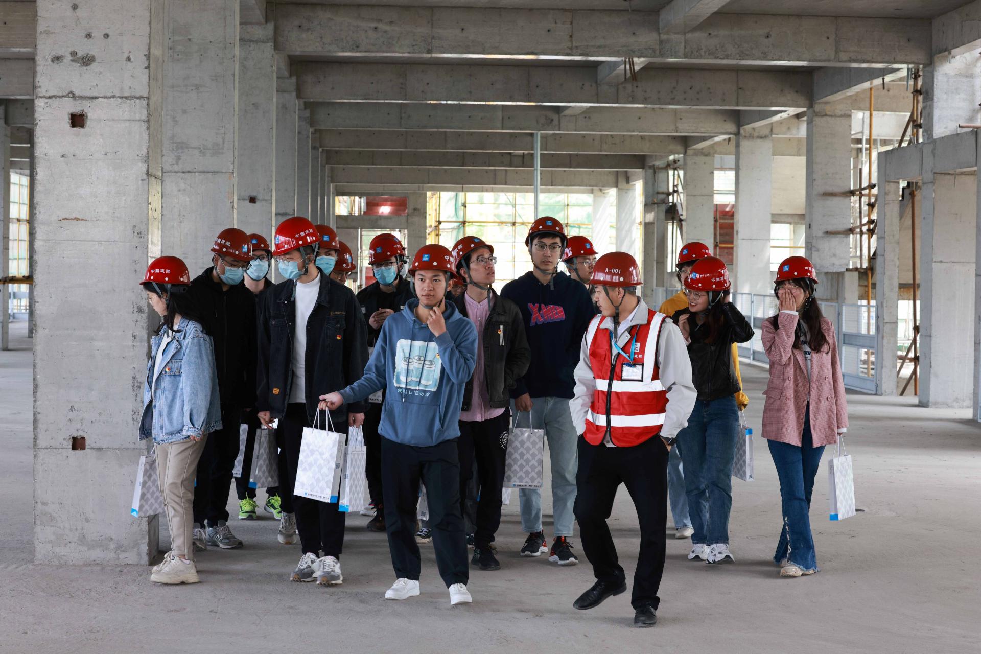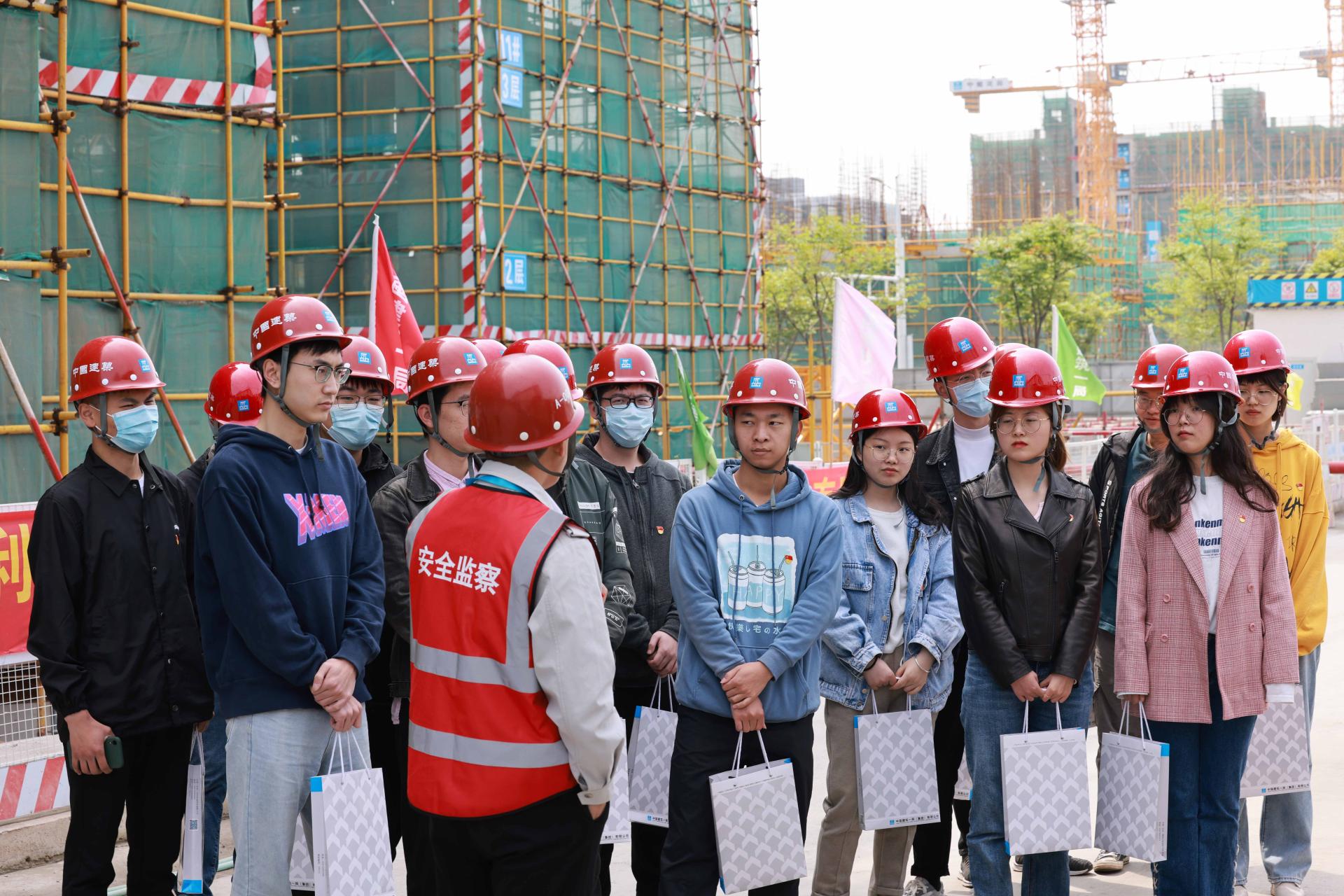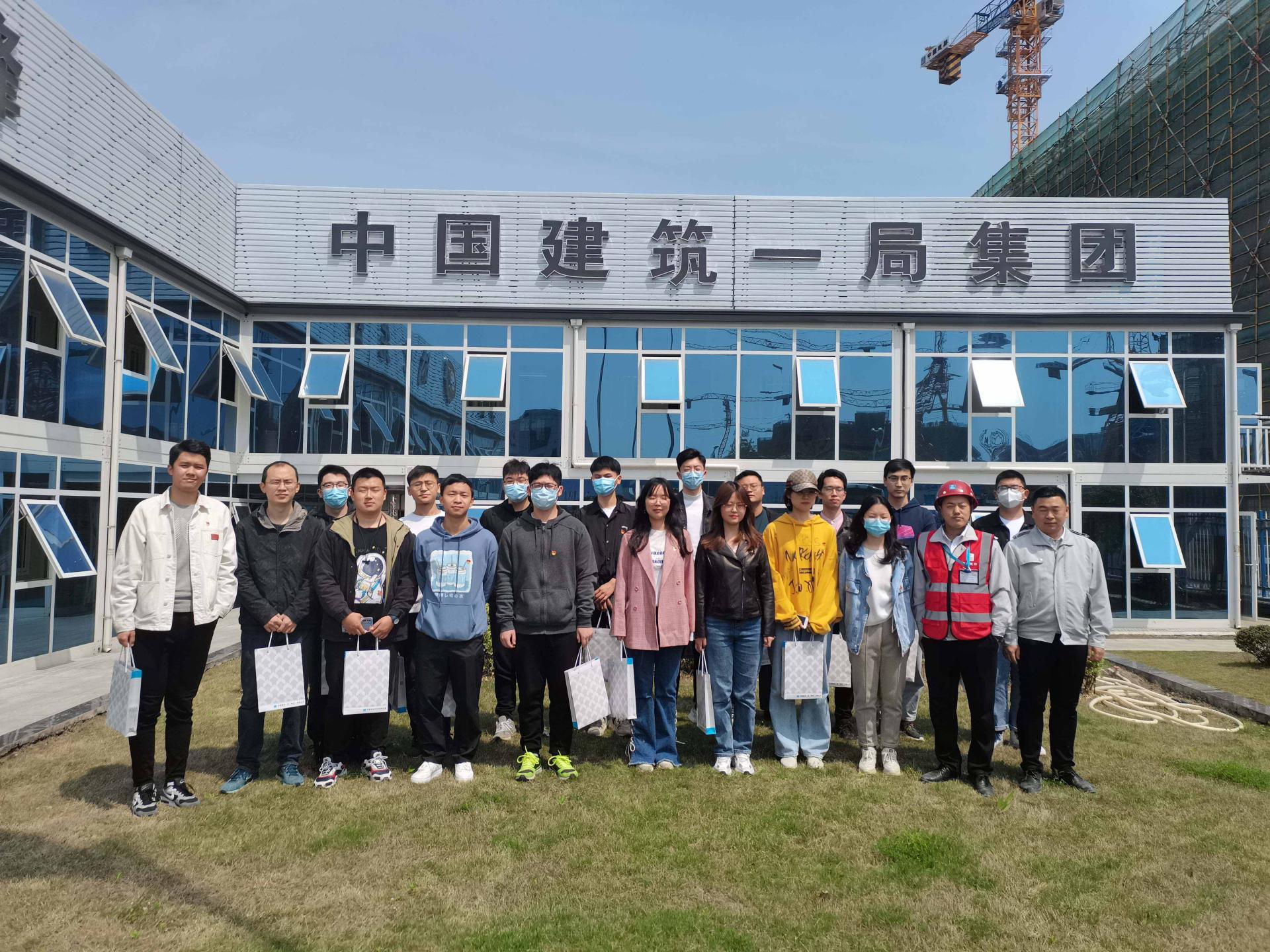 为深化党史学习教育,讴歌中华民族实现伟大复兴的百年奋斗历程。2021年4月15日,999论坛白菜大全本科生第三党支部及本研联合第一党支部党员师生代表在党委书记张涛的带领下走进中建一局二公司项目部参加项目开放日绣党旗活动。