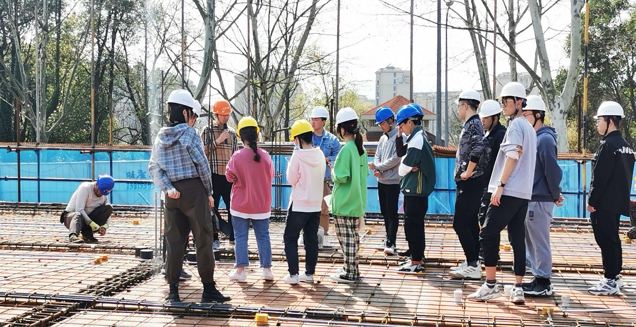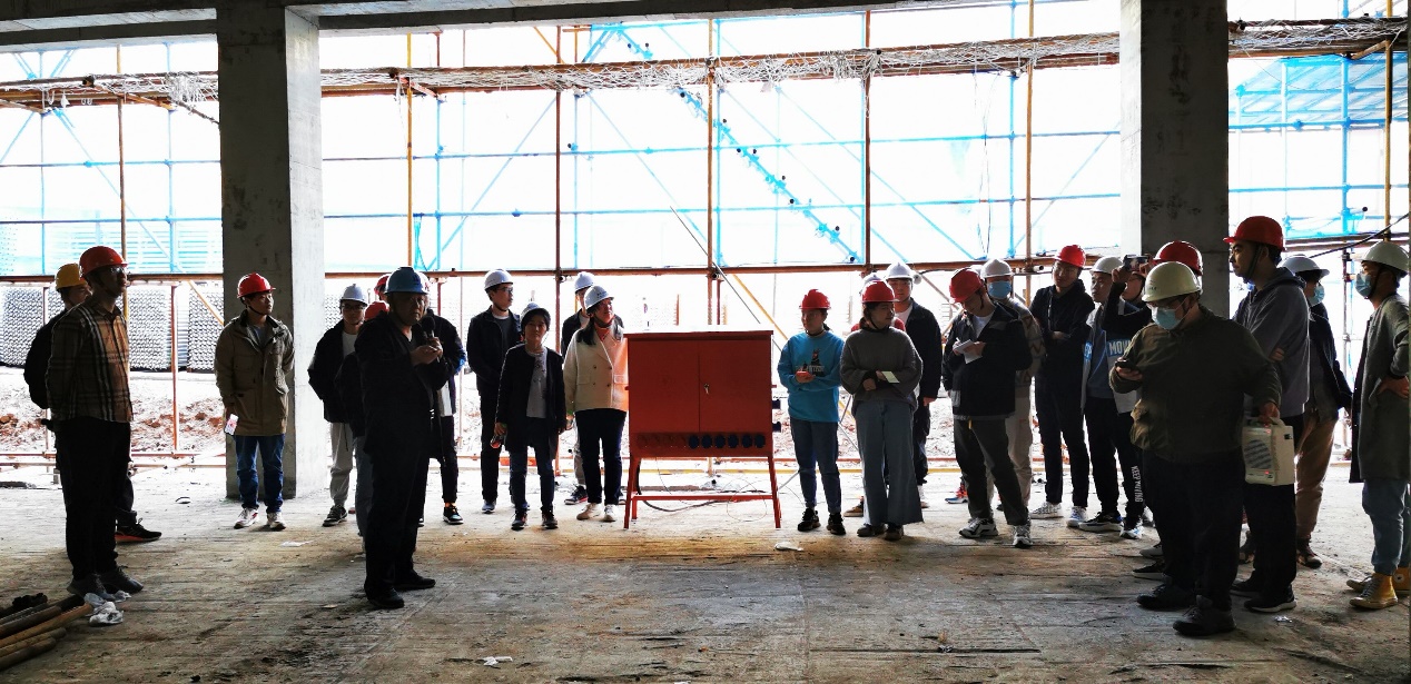 3月24日至25日,在卢红琴、宋俊美、霍瑞丽、蔡云竹等老师的带领下,同学们走进了学校校园内部工地项目—999策略白菜手机论坛江浦校区化学与分子工程学院办公楼和实验楼,该项目由江苏省建筑设计研究院有限公司设计、华夏工程项目管理有限公司监理、江苏贡固建设工程有限公司施工,总建筑面积15979.70平方米,采用钢筋混凝土框架结构体系,地下1层,地上6层,总建筑高度23.85米。现场参观时,本项目正在进行第4层梁、板、柱钢筋的绑扎工作,通过专业技术人员的讲解,同学们对钢筋混凝土框架结构建筑的结构平面布置、配筋构造、施工工序有了比较深刻的认识,并学习了山地建筑基础工程的施工要点、楼梯梯柱与梯梁布置、伸缩缝和抗震缝的设计施工等知识。该项目契合本科生毕业设计课题,为毕业设计工作的顺利开展打下基础。