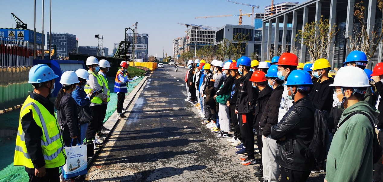3月26日,同学们来到由中国建筑一局(集团)有限公司负责建设的南京云商乐数码科技有限公司总部基地项目现场,该项目位于南京市江北新区,总建筑面积49436.83平方米,地下2层,地上20层,采用框架-核心筒结构体系,目前正处于基础连续墙施工阶段。在项目负责人的带领下,同学们系统地了解了工程的基本概况、平面布置、组织机构、安全生产管理制度等,通过与施工负责人面对面交流,积极提出问题进行讨论,强化了专业理论,激发了学习兴趣。