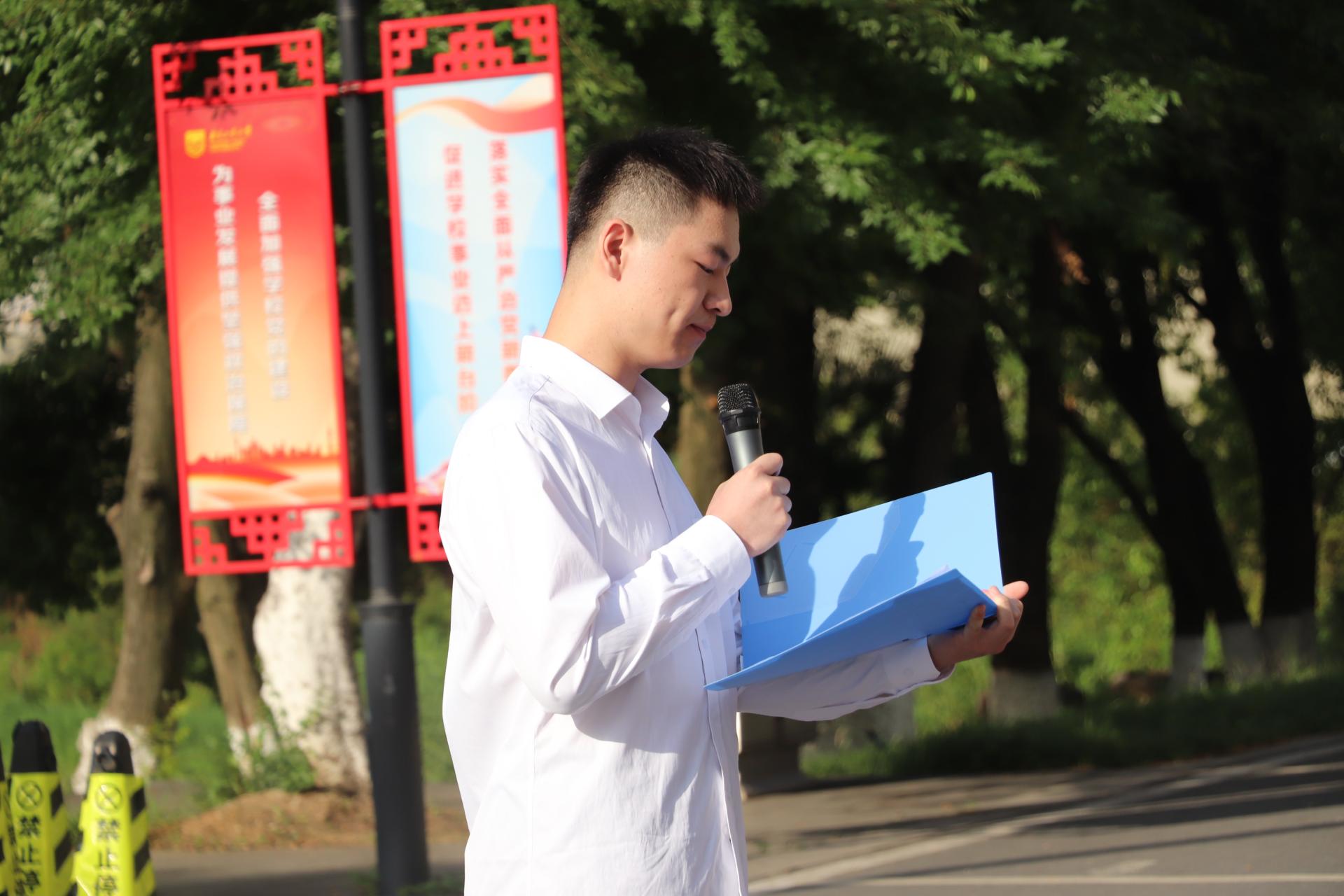 两院学生代表土木类2006班王鼎丞、地质2002班梁真弋同学分别作国旗下讲话,表达了要爱国爱民、锤炼品德、勇于创新、实学实干,坚定为祖国为人民永久奋斗、赤诚奉献的理想决心。
