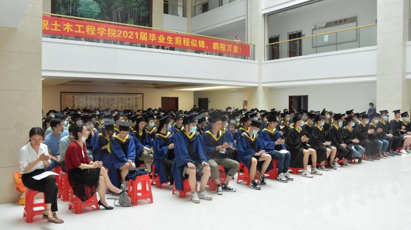 6月17日下午,999论坛白菜大全2021届毕业典礼在土木学科楼一楼中庭举行。学院领导班子、各系负责人、教授委员会代表、2021届本科生和研究生毕业生代表、教师代表、家长代表等参加典礼。典礼由学院党委副书记路遥主持。