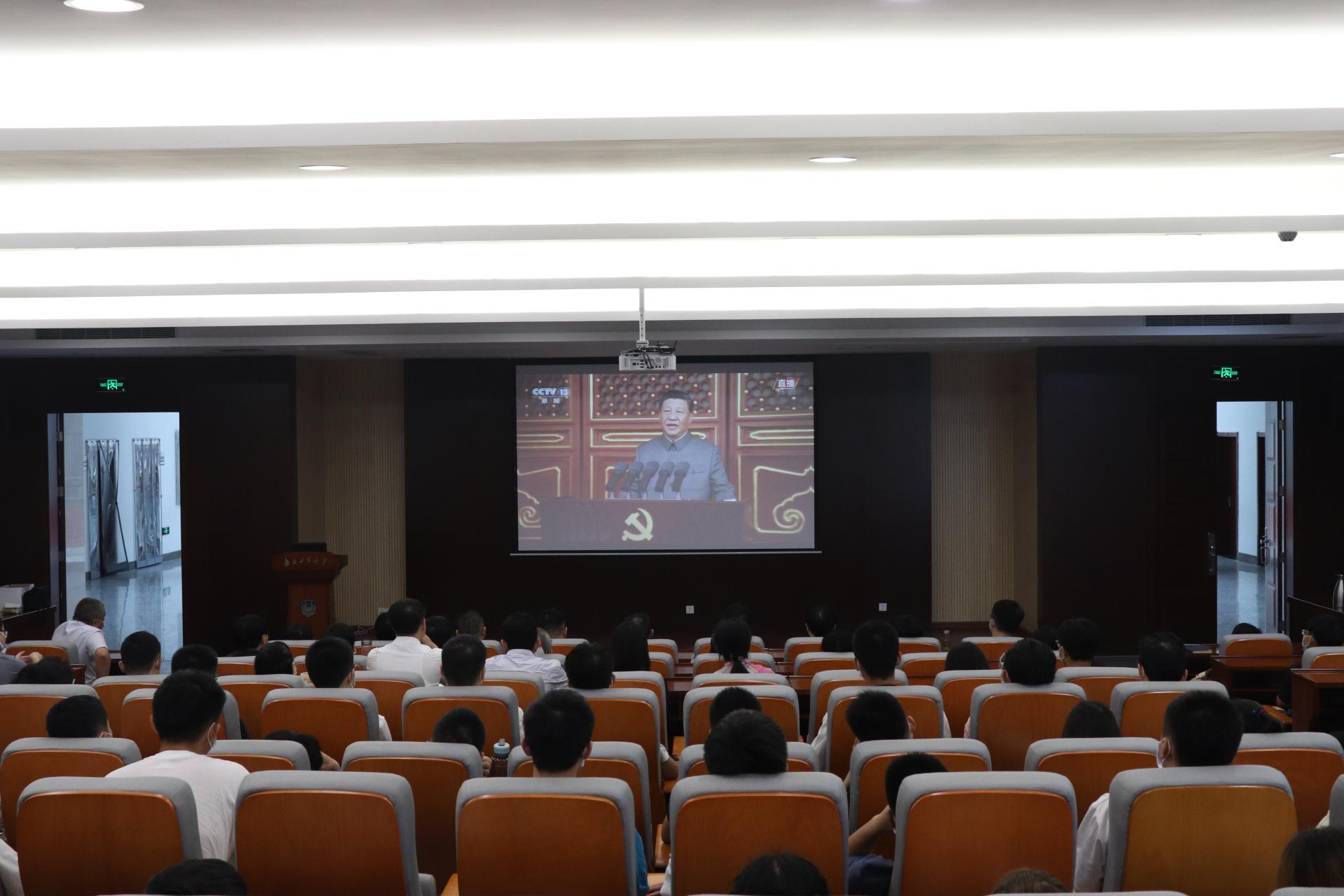 7月1日上午8时,庆祝中国共产党成立100周年大会在北京天安门广场隆重举行。999论坛白菜大全领导班子全体成员、师生党员代表、入党积极分子代表、学生骨干代表等共160余人在立德楼208报告厅集中收看大会实况,认真聆听习近平总书记重要讲话,共同回顾百年征程波澜壮阔,共同感悟百年初心历久弥坚。