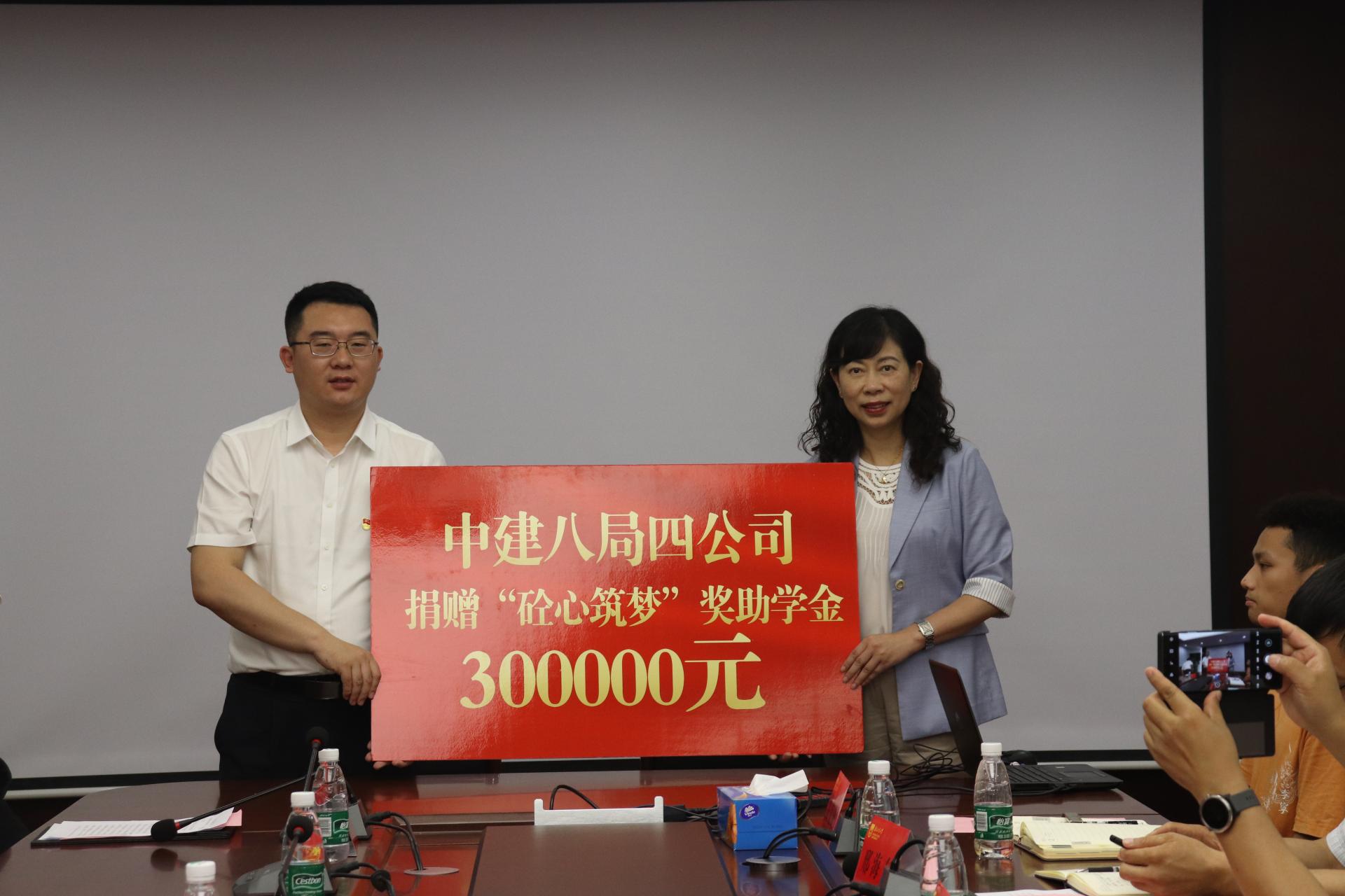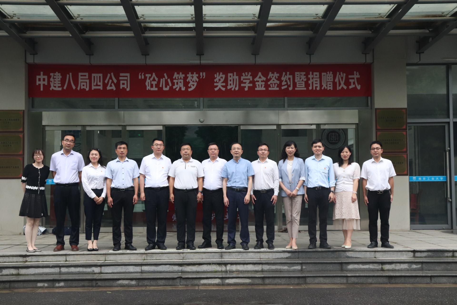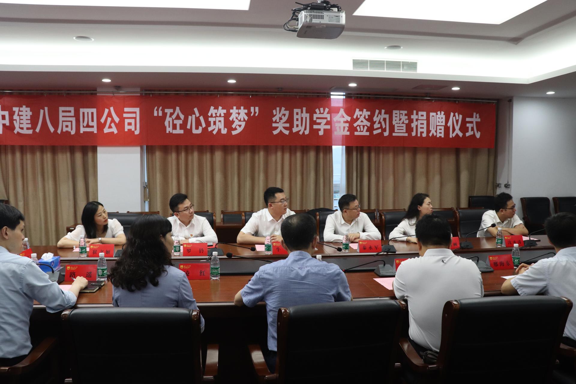 7月2日下午,中建八局四公司“砼心筑梦”奖学金捐赠暨签约仪式在999论坛白菜大全举行。中建八局四公司人力资源部总经理牛毅,华东公司副总经理秦永军、总工程师罗铃、经理助理兼党群部经理徐艳丽、人力资源部经理崔文姬等出席捐赠仪式。白菜官网学生工作处副处长邢海东,对外合作与发展处副处长凌红,土木学院党委书记张涛、院长王曙光,经管学院党委副书记岳克勤等参加会议。签约仪式由土木学院党委副书记路遥主持。