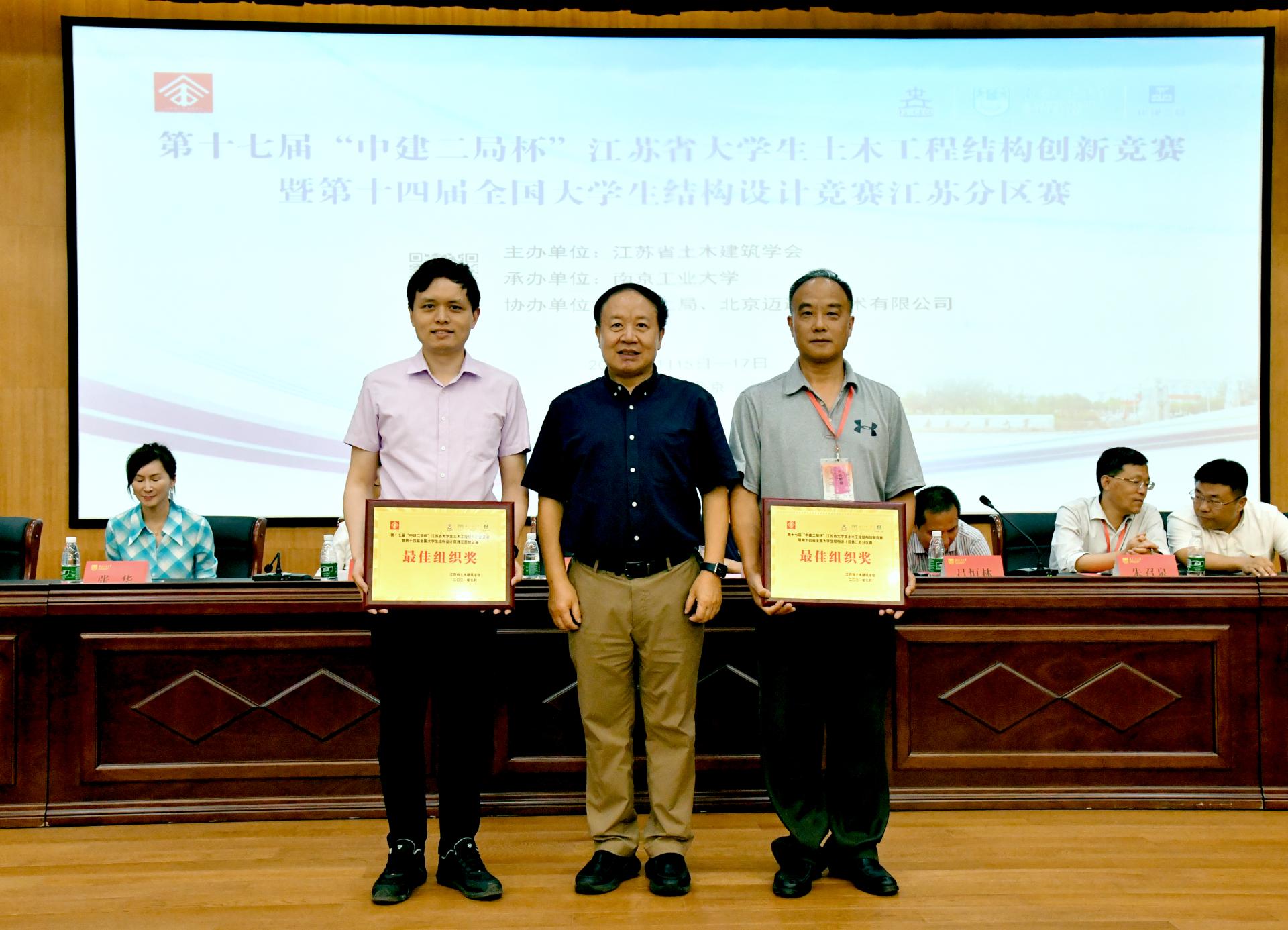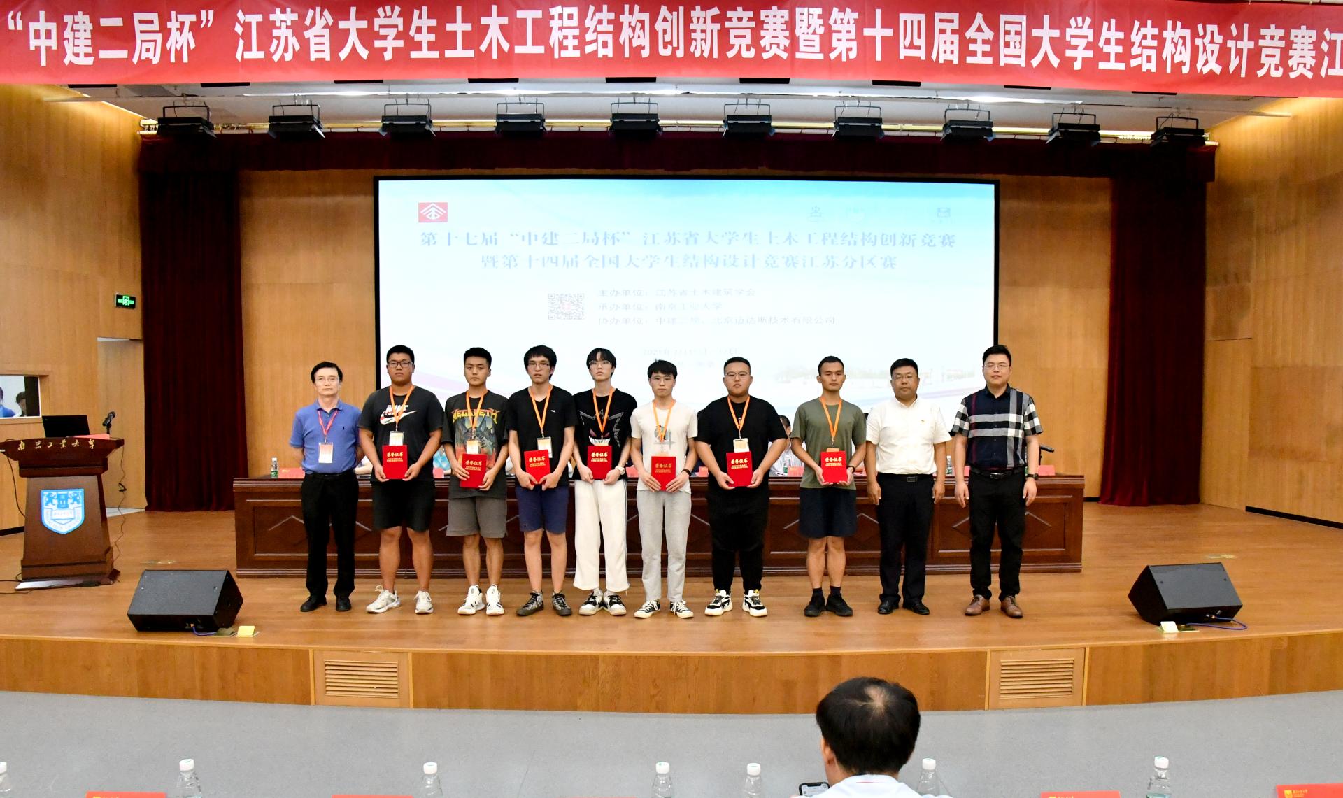 7月17日,第十七届“中建二局杯”江苏省大学生土木工程结构创新竞赛暨第十四届全国大学生结构设计竞赛江苏分区赛在白菜官网江浦校区体育馆圆满落幕。白菜官网副校长李世收,省土木建筑学会副理事长秘书长王华,中建二局人力资源部总经理张发明,省土木建筑学会教育工委副主任委员吕恒林、秘书长张华及评委代表、参赛师生等出席活动,闭幕式由999论坛白菜大全副院长王俊主持。
