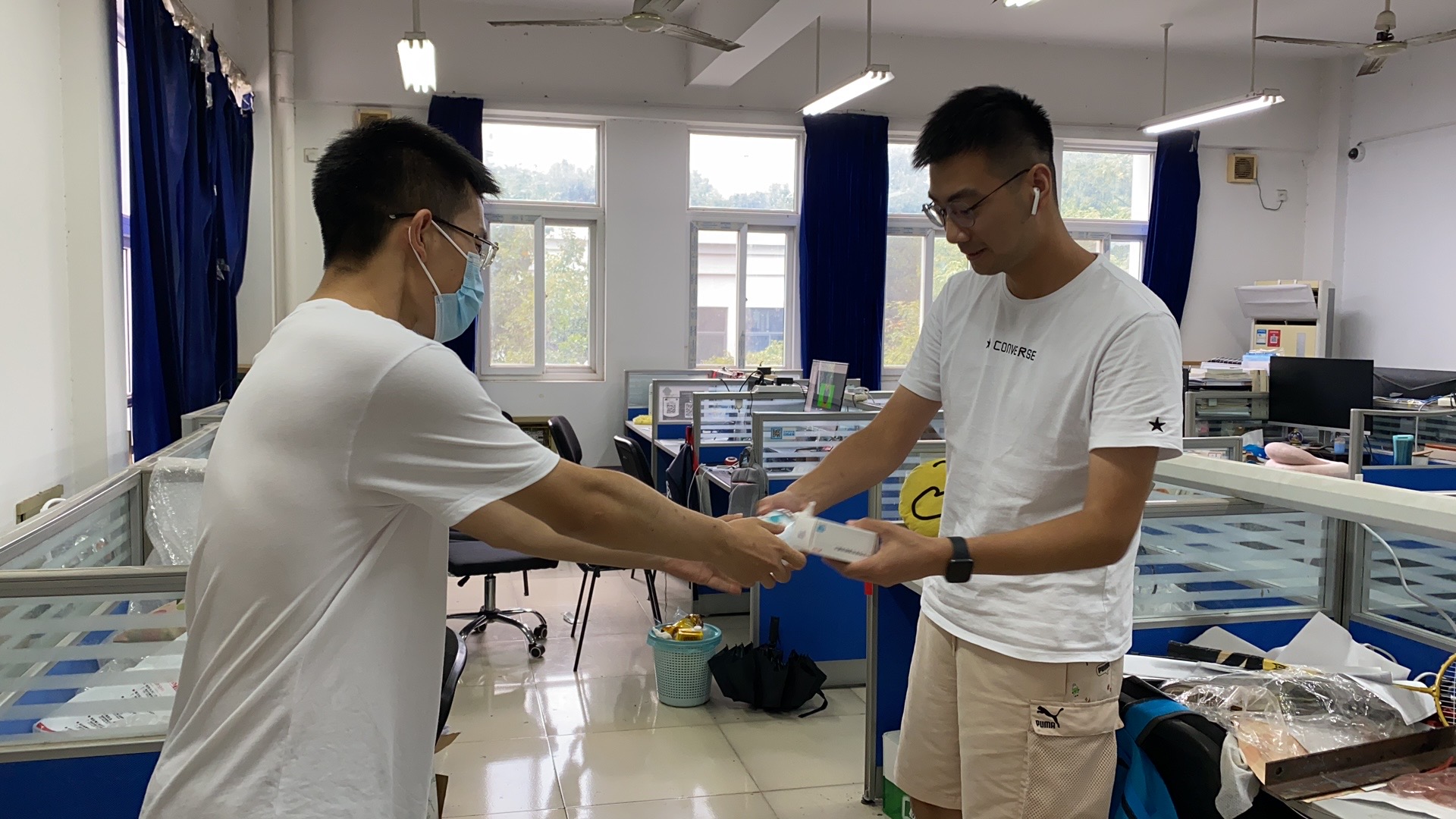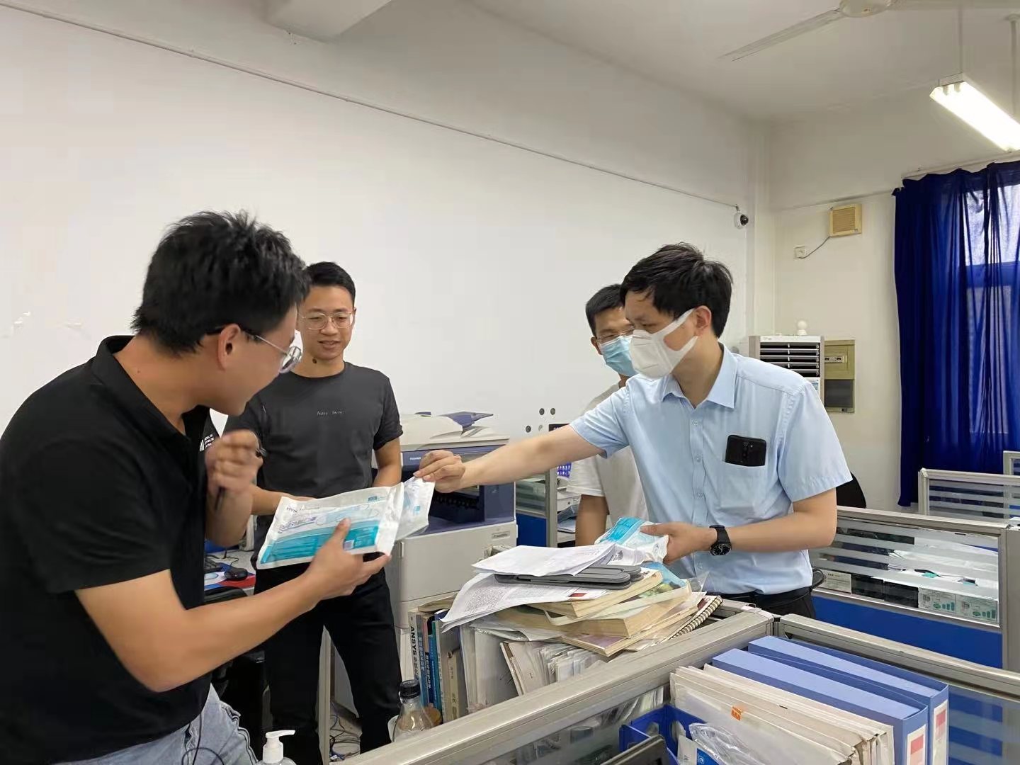 在地坤楼研究生工作室,老师们实地查看了工作室的环境卫生及消毒工具配备情况并询问了留校研究生的科研工作进展。路副书记叮嘱研究生,工作室作为研究生学习、科研的公共空间,人员相对集中固定,要切实加强工作室环境卫生建设,做到疫情防控和科研工作两不误。同学们对学院关心和慰问表示感谢,并承诺遵守疫情防控有关要求,充分利用暑期留校时间进行学习、开展研究。