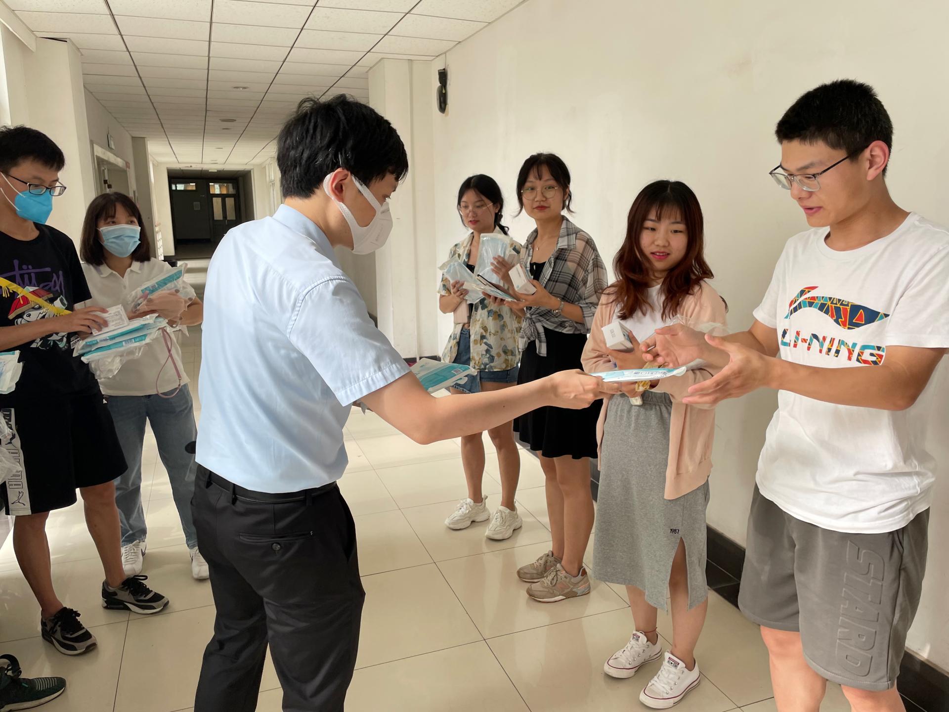 为全面了解暑期留校学生的学习生活情况,保障学生考研复习、科研工作、学科竞赛等工作有序开展,近日,999论坛白菜大全党委副书记路遥,毕业班辅导员狄远帆、游艺林,研究生辅导员李涛到同和楼考研自习教室和地坤楼研究生工作室看望慰问留校学生,并代表学院为留校学生送上医用外科口罩、酒精消毒片、免洗消毒凝胶等防疫物资。