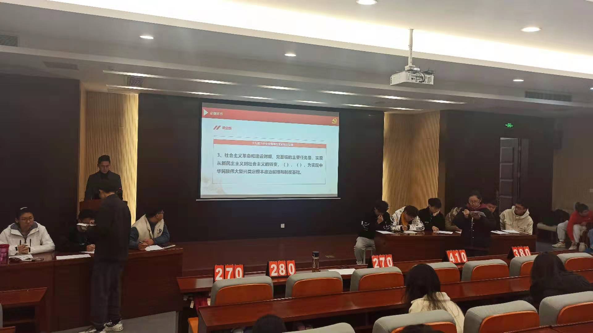 路遥老师在致辞中表示,学习宣传贯彻党的十九届六中全会精神是当前和今后一个时期同学们政治生活中的一件大事。希望全体同学以知识竞赛为契机,做到深刻理解悟中学、支部党员带头学、融会贯通深入学。