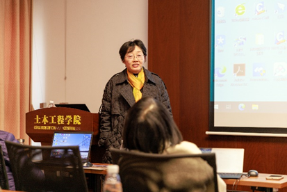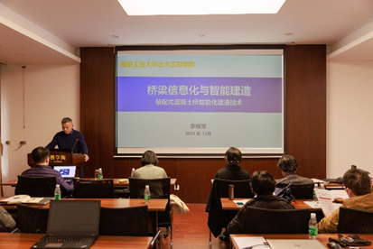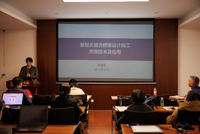 国家级人才张建东教授介绍了团队近15年来在钢混组合桥梁与工业化方面取得的研究成果;方海教授介绍了其在高性能纤维增强复合材料结构及其桥梁工程领域创新应用成果。教学名师徐秀丽教授结合“浦仪大桥BIM技术集成及应用”、“312国道装配式混凝土桥智能化建造技术”等课题详细介绍了桥梁信息化与智能建造技术的最新成果;王俊教授展示了基于自感知碳纳米管的结构智能监测与快速修复方法的前沿成果;李雪红教授介绍了世界最大跨度2300m悬索桥—张靖皋长江大桥钢桥面板疲劳性能研究的系列试验成果。李枝军、方园、洪万、蔡忠奎、邓文琴、吴彪、赖韬、胡皓等教师分别汇报了人工智能与计算机视觉、石墨烯复配阻燃材料、分布式光纤感知、沿海桥梁耐久加固、装配式波形钢腹板组合梁桥、超声波信号去噪、三维激光扫描与复杂桥塔施工、节段梁桥特殊抗剪等研究领域的最新进展,报告精彩纷呈,激发了现场老师和同学们的浓厚兴趣。