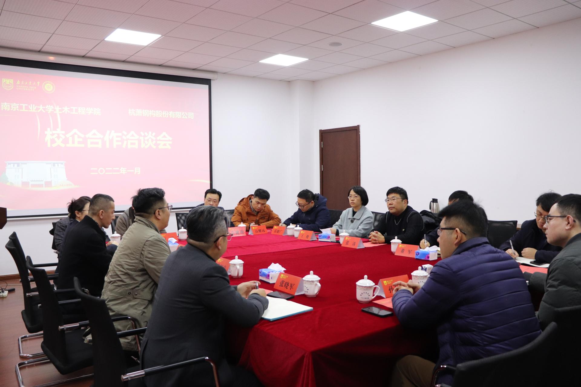 院党委书记张涛对杭萧钢构股份有限公司负责人的到来表示热烈欢迎。双方介绍了彼此概况与特色项目,董事长黄新良表示,公司致力于钢结构建设与发展,以绿色建筑为理念,打造顺应数字化、网络化、智能化发展要求的新平台,与999论坛白菜大全的合作前景广阔,期待未来在人才引进、科研项目等方面寻找更多合作契机。董军教授充分肯定了杭萧钢构股份有限公司取得的业绩与坚持,分析了当下的建筑现状,指出双方合作可以进一步发展,将方案落到实处。