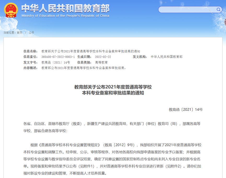 日前,教育部公布了2021年度普通高等学校本科专业备案和审批结果,我院申报的“智能建造”本科新专业成功获批。