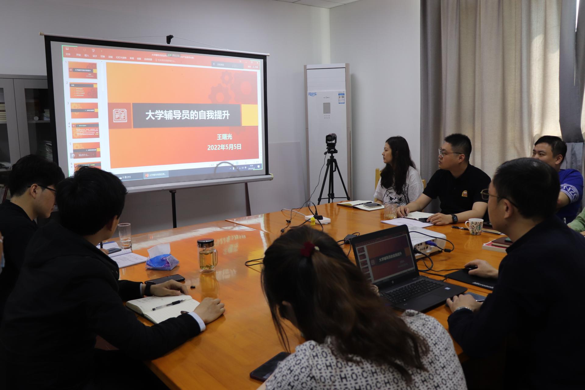 王曙光院长首先对疫情防控期间学院辅导员闻令而动、主动担当、坚守一线表示肯定。随后,王院长结合自身丰富工作经历和学院特点,从辅导员的重要性、辅导员的角色定位、辅导员工作的普遍问题和辅导员的自我提升路径等四个方面与辅导员们深入交流。王院长结合辅导员的九大职责,分析了辅导员日常工作存在的普遍问题,并从基本素质培养与相关能力提升两个方面提出了辅导员自我提升的路径。他希望辅导员通过读史、懂心理、懂管理来培养基本素质,通过实践工作提升专业水平、通过课题申报提升理论水平、通过写作汇报提升表达水平。他勉励全体辅导员一要全面充实自我,二要做精日常工作,三要挖掘研究素材,四要总结提炼提高,在提升职业能力素养的同时以实际行动践行“爱与服务”学工理念。