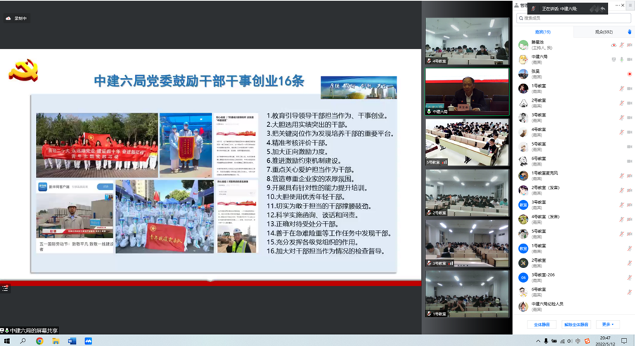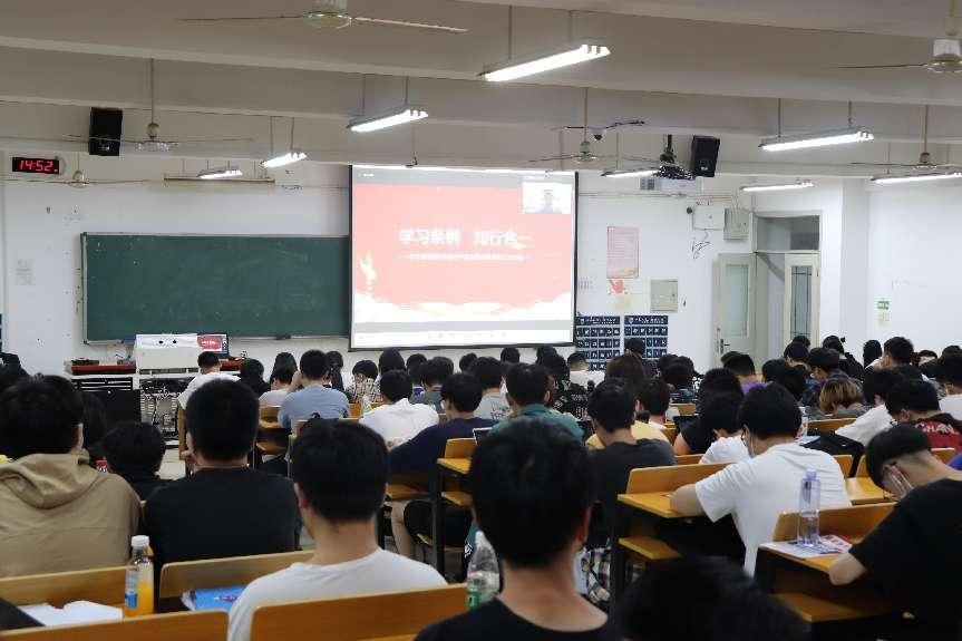 5月12日、5月13日晚,999论坛白菜大全分别邀请了中建六局党委常委、纪委书记裴宏森、中建管理学院党委副书记、纪委书记、工会主席高海港,两位央企专家为学生讲授专题党课,999论坛白菜大全入党积极分子、师生党员、全校各支部纪检委员以及中建六局广大职工群众线下线上同步参加学习,同时听课人数1000余人。
