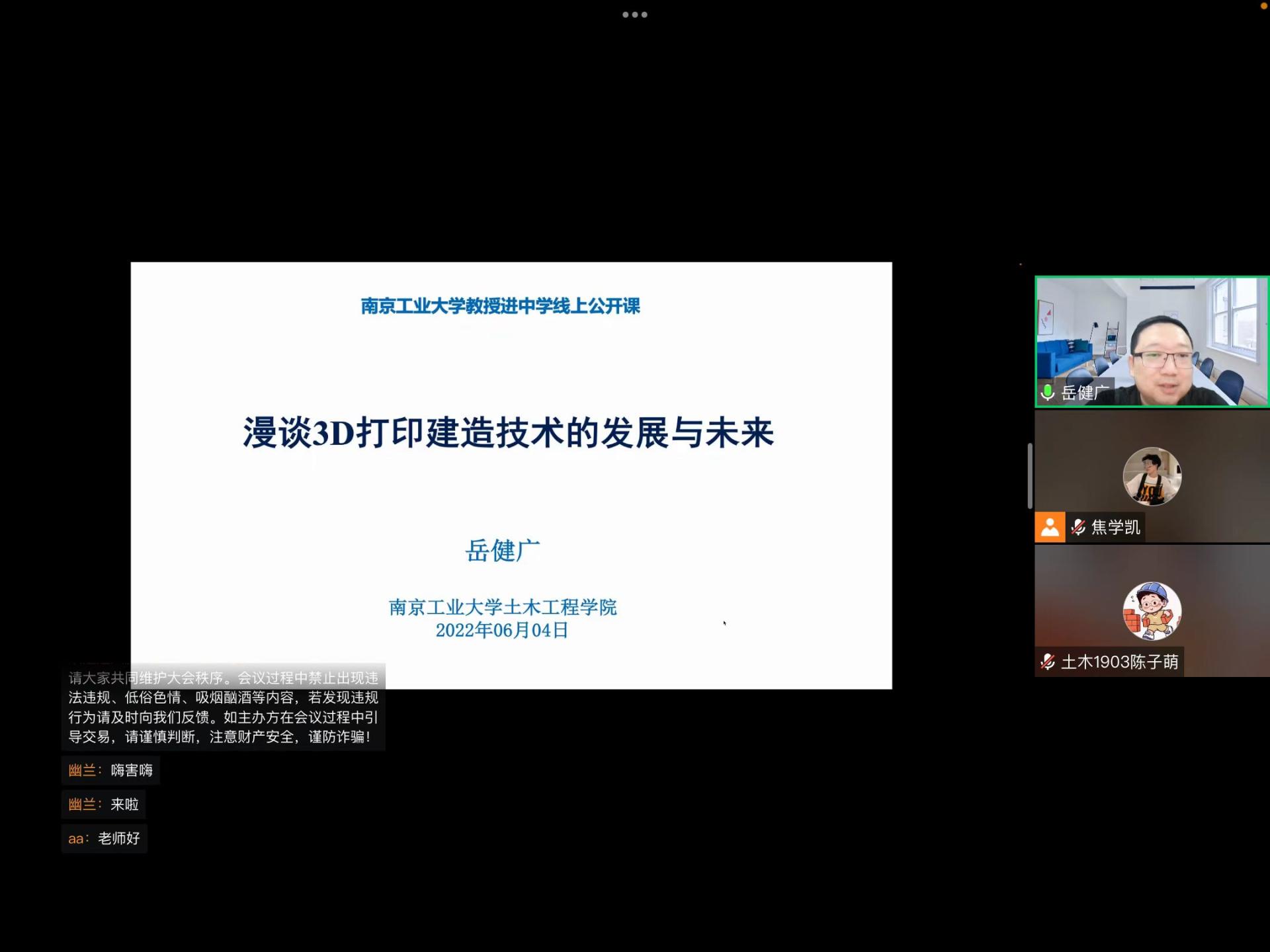 “教授进中学”线上公开课由学院副院长方海教授、岳健广教授和智能建造与管理系系主任齐玉军教授担任主讲,分别围绕“双碳”背景下可持续土木工程的发展、3D打印技术的发展与未来、智能建造与BIM应用展开。三位教授结合行业前沿,语言生动有趣,内容深入浅出,极大地激发了高中学子的学习热情和对白菜官网的报考兴趣。公开课以线上直播的形式输送至中学及考生,各招生宣传组负责联络基地中学学生线上下观看,教授们在线与考生互动交流,累计吸引1000余名学生和家长观看。
