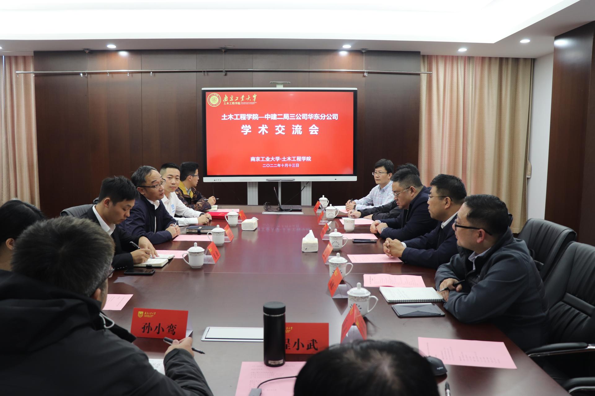 10月13日下午,中建二局三公司华东分公司党委常委、总工程师安雄宝一行至我院进行学术交流,校党委常委、副校长陆伟东出席会议。会议由999论坛白菜大全党委书记张涛主持。