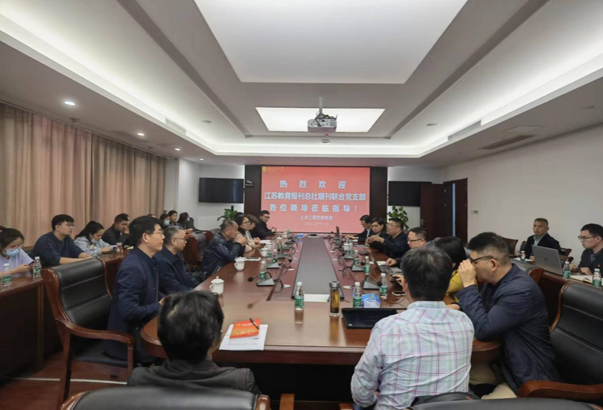 张涛书记首先对江苏教育报刊总社期刊联合党支部各位党员的到来表示热烈的欢迎,对江苏教育报刊总社期刊联合党支部长期以来对学院发展的关心支持表示感谢,希望通过本次共建活动,继续深化合作,借助媒体平台优势帮助土木学科做好宣传,让更多的考生及学生家长了解土木学科以及行业未来广阔的发展前景。