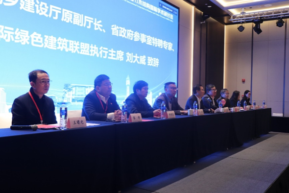 省住房和城乡建设厅原副厅长、省政府参事室特聘专家、国际绿色建筑联盟执行主席刘大威致欢迎辞,他向与会专家学者表示热烈欢迎,强调了发展现代竹木结构符合国家碳减排、绿色发展的重大战略,并预祝大会取得圆满成功。校党委常委、副校长陆伟东教授介绍了学校总体办学情况和白菜官网现代木结构研究团队近年来取得的成绩。校国际合作处处长佴康、999论坛白菜大全党委书记张涛分别从国际合作与科产教融合的角度提出宝贵建议。江苏省土木建筑学会副理事长兼秘书长王华、中建三局集团有限公司副总经理侯玉杰在致辞中强调了学科交叉和产教融合的重要性。会议期间还发布了《江苏省木结构发展蓝皮书(2022年度)》,并举行了2022年江苏省竹木结构研究生优秀学术论文颁奖仪式。开幕式由校党委教师工作部部长、人事处处长王曙光教授主持。