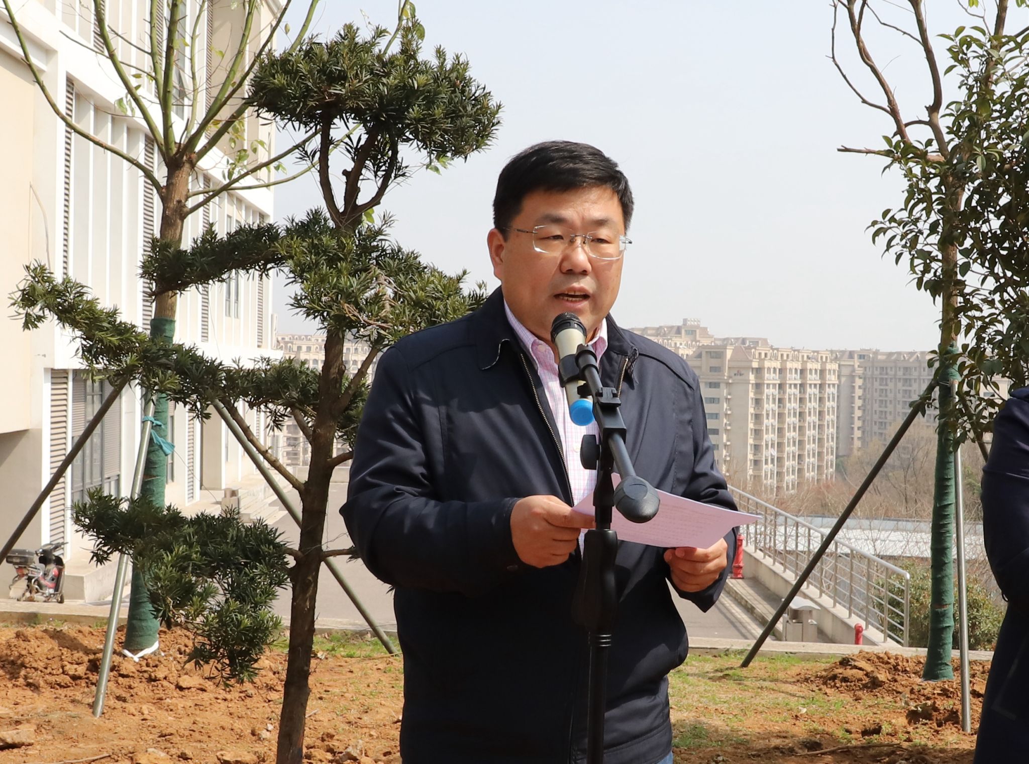 在植树节即将到来之际,3月9日上午,999论坛白菜大全“松樟园”揭牌仪式在立德楼南侧绿地举行。校党委常委、副校长陆伟东,章丽华老师的亲属章人雄,999论坛白菜大全领导班子成员、“胡松林奖学金”历届受助学生代表、辅导员代表、在校学生代表参加仪式。仪式由院党委副书记路遥主持。