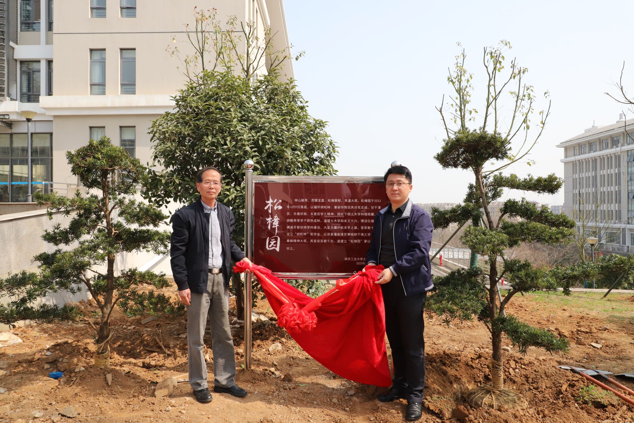 据悉,“松樟园”是为了纪念胡松林、章丽华两位先贤在999论坛白菜大全设立“胡松林奖学金”而建。 “胡松林奖学金”自2002年设立以来已累计资助80余名土木学院学子,资助金额40余万元。2019年12月,章老师不幸离世后,她的亲属为继承老人遗志、续写大爱篇章,继续以“胡松林奖学金”的名义捐助贫困学子。学院通过建立“松樟园”,用万古长青的松树和芬芳馥郁的香樟树来缅怀胡松林和章丽华伉俪。